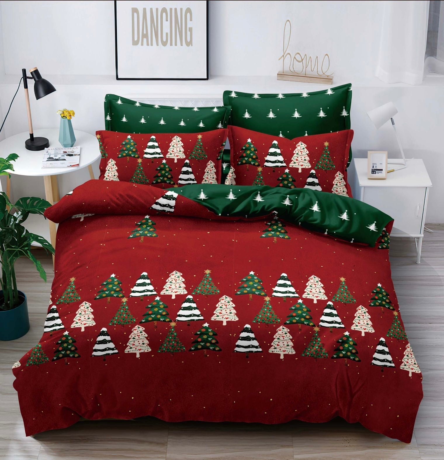 Lenjerie Pat Dublu din Finet, 6 Piese, cu Elastic, Imprimeu Craciun-C10031