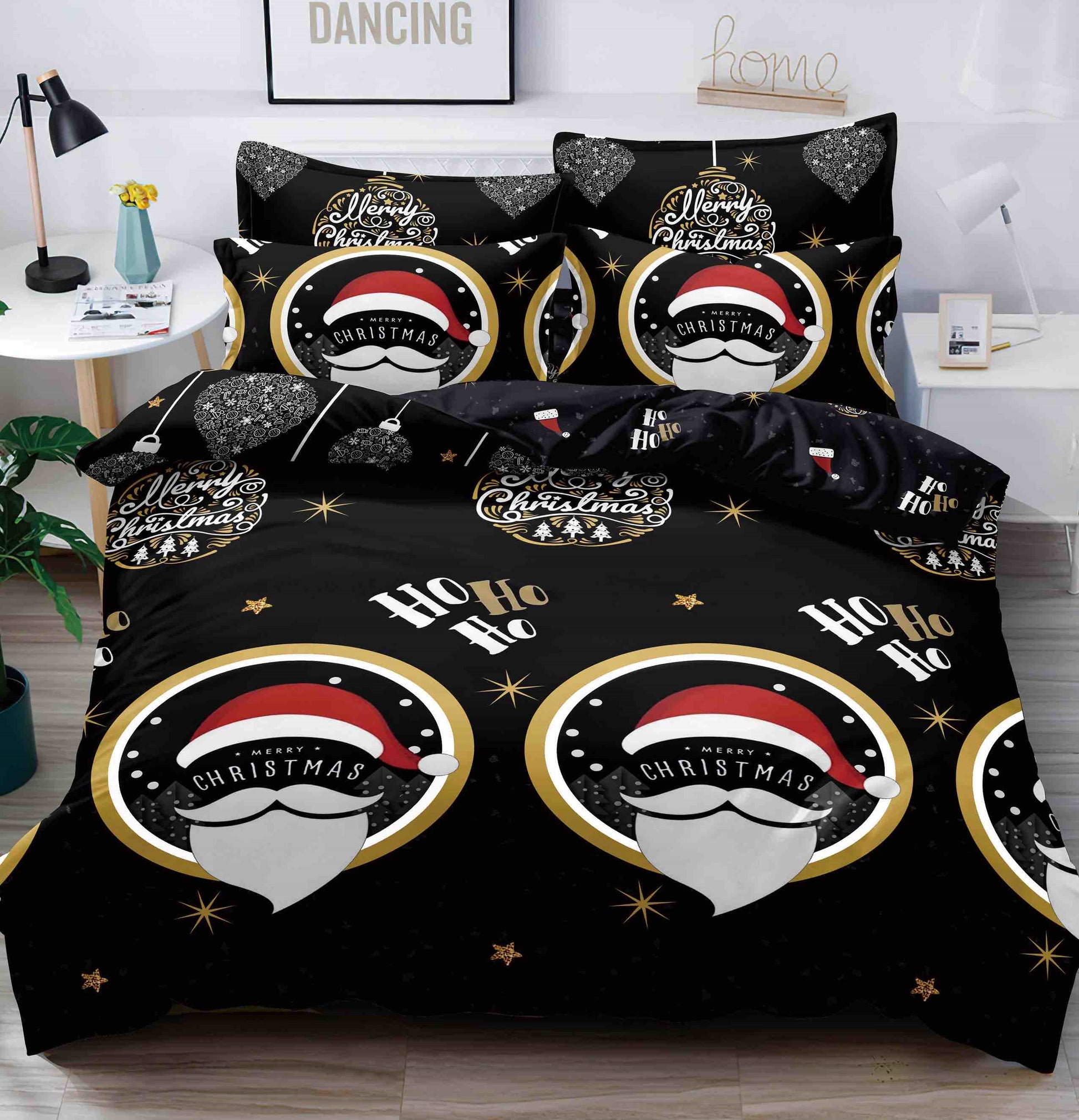 Lenjerie Pat Dublu din Finet, 6 Piese, cu Elastic, Imprimeu Craciun-C9717