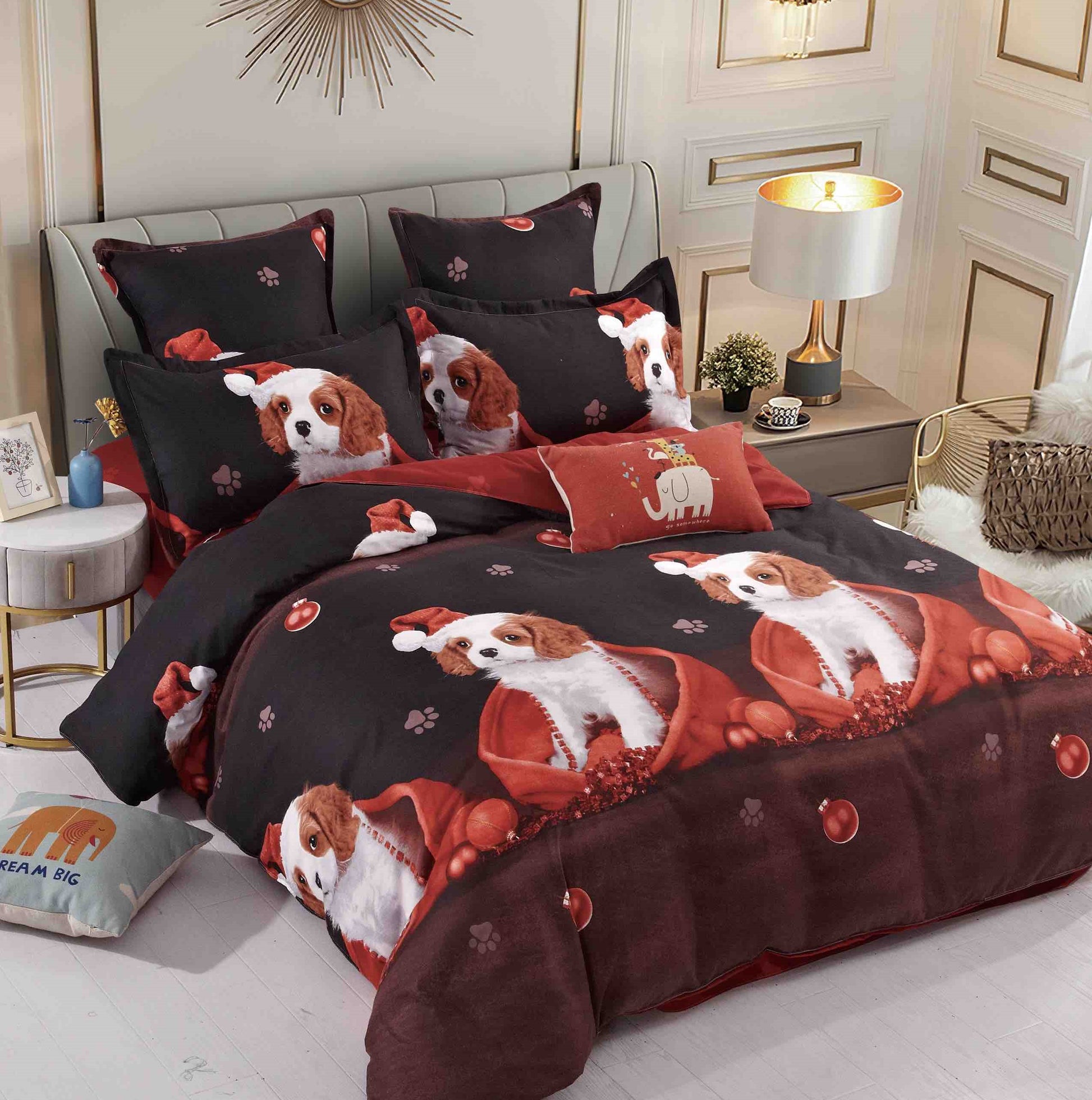 Lenjerie Pat Dublu din Finet, 6 Piese, cu Elastic, Imprimeu Craciun-C9718