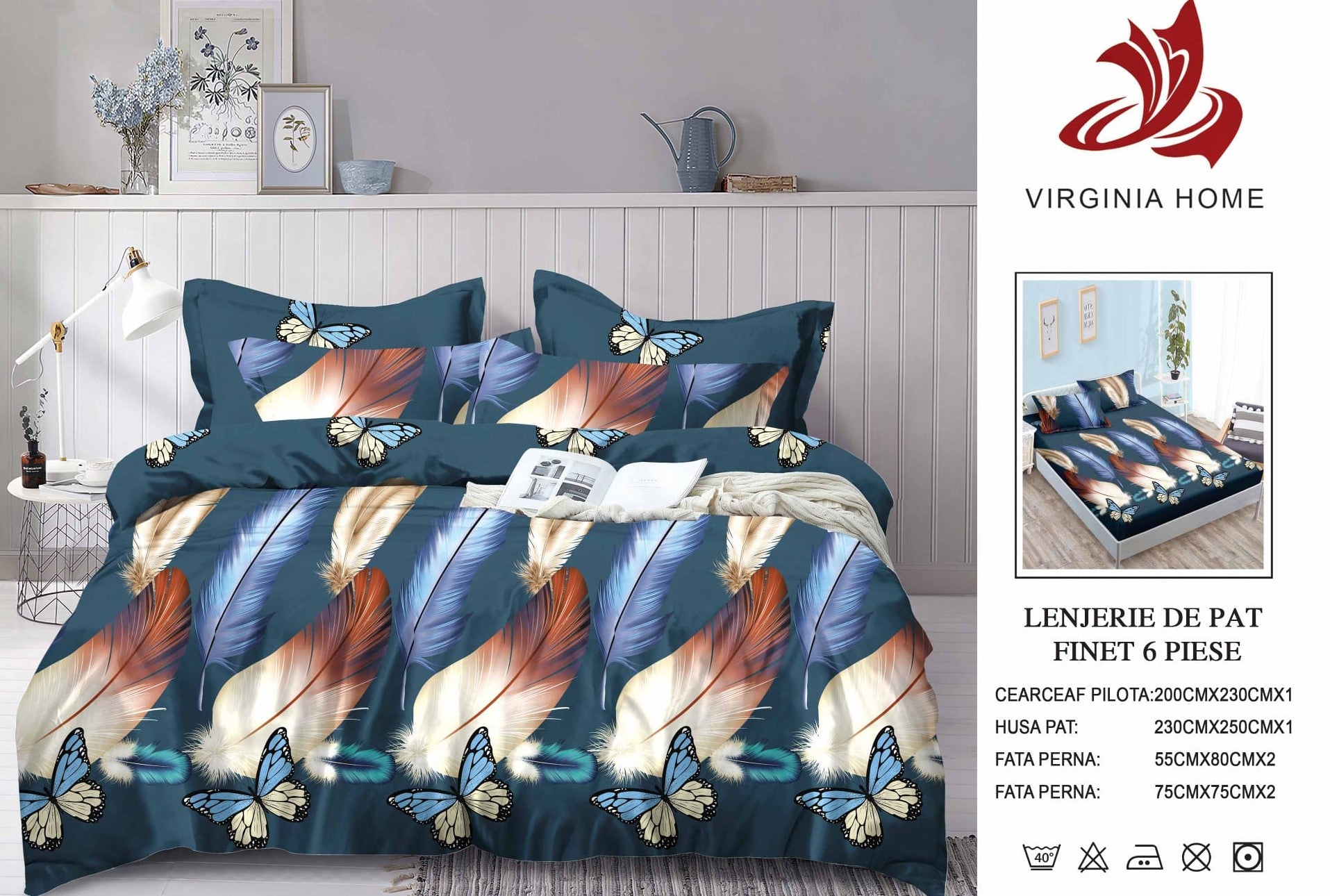Lenjerie Pat Dublu din Finet, 6 Piese, cu Elastic, Pene-V8923