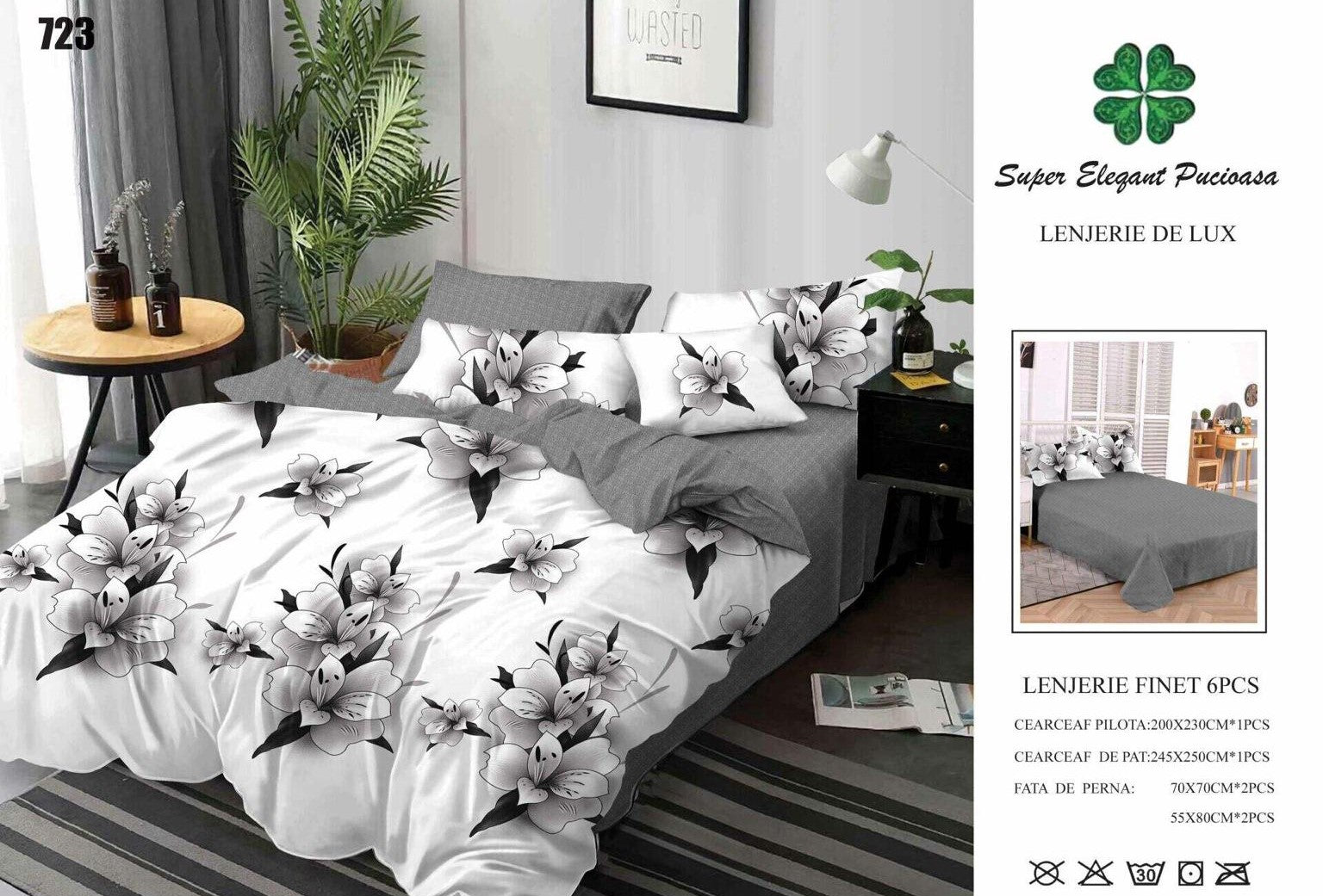 Lenjerie Pat Dublu din Finet, 6 Piese, Flori-SEP9085