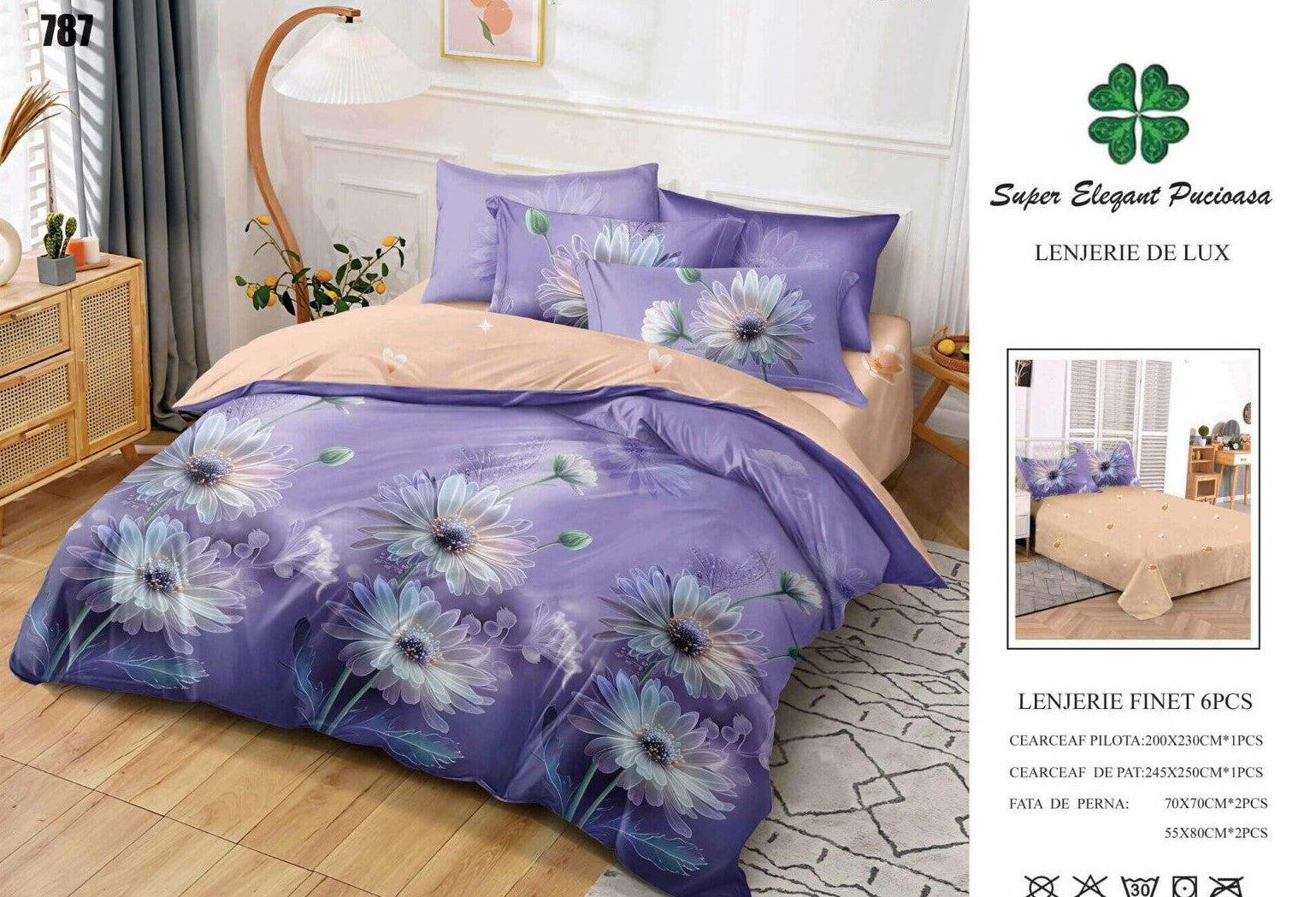Lenjerie Pat Dublu din Finet, 6 Piese, Flori-SEP9088