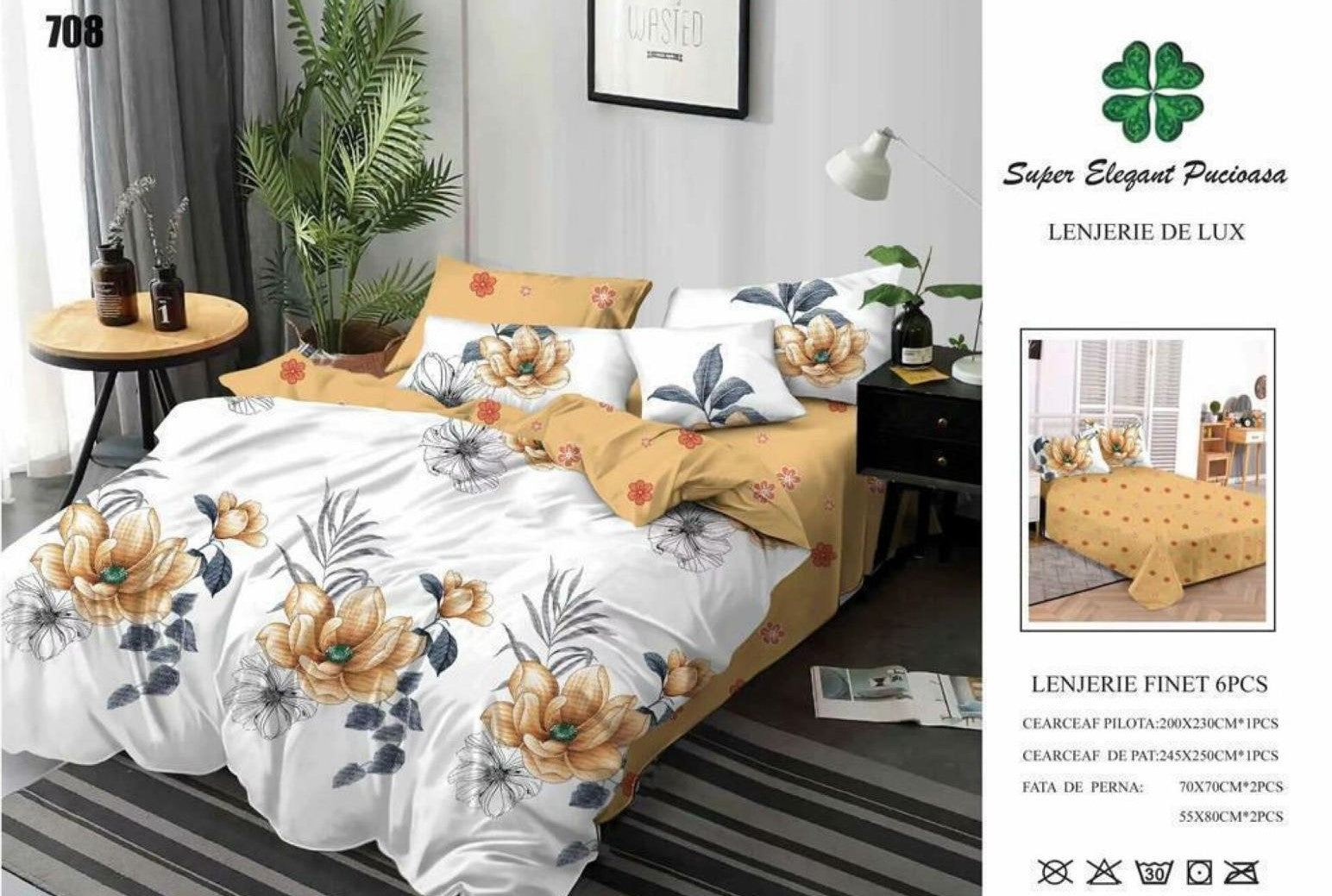 Lenjerie Pat Dublu din Finet, 6 Piese, Flori-SEP9096