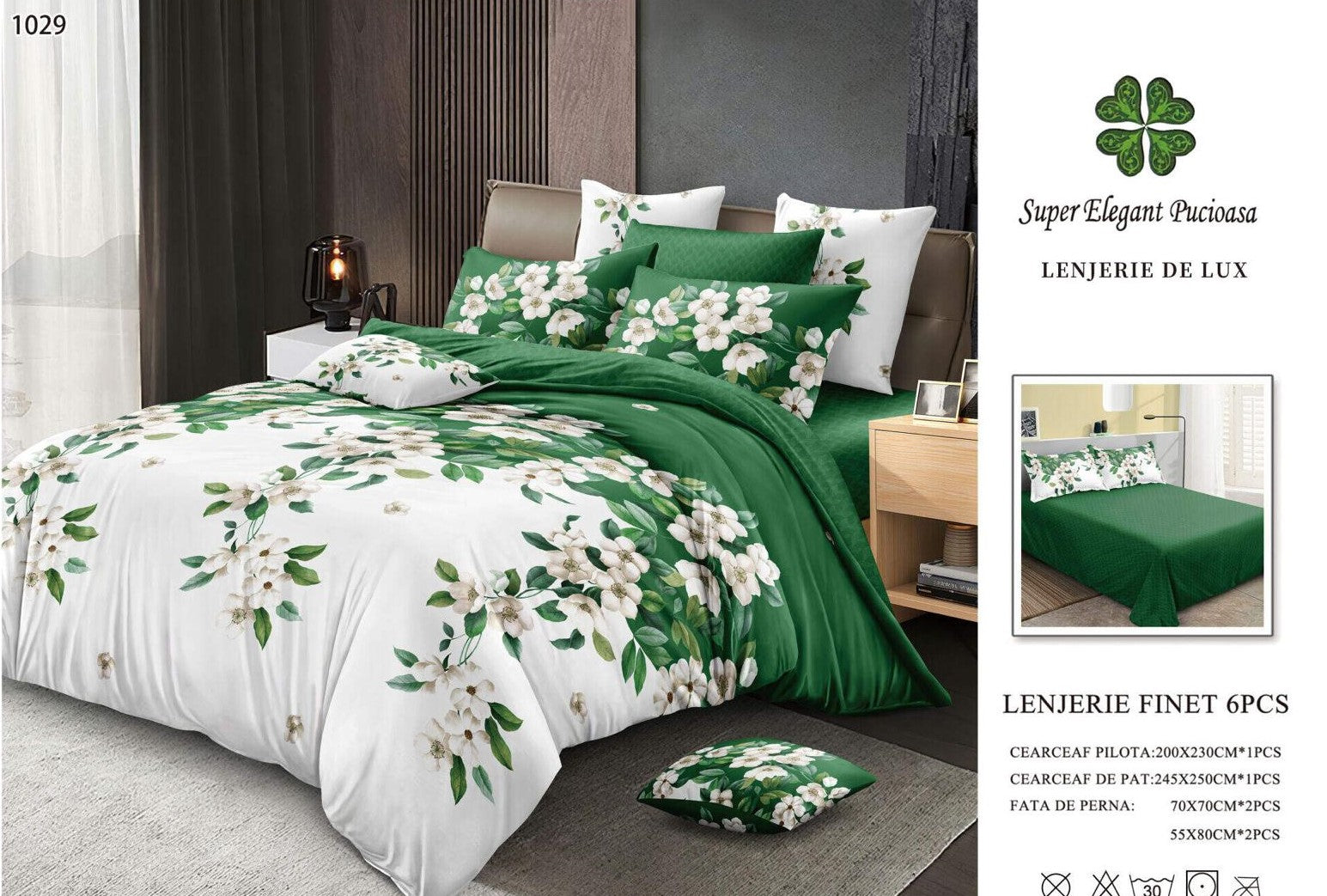 Lenjerie Pat Dublu din Finet, 6 Piese, Flori-SEP9101