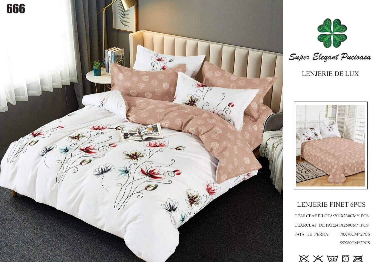 Lenjerie Pat Dublu din Finet, 6 Piese, Floricele-SEP9083