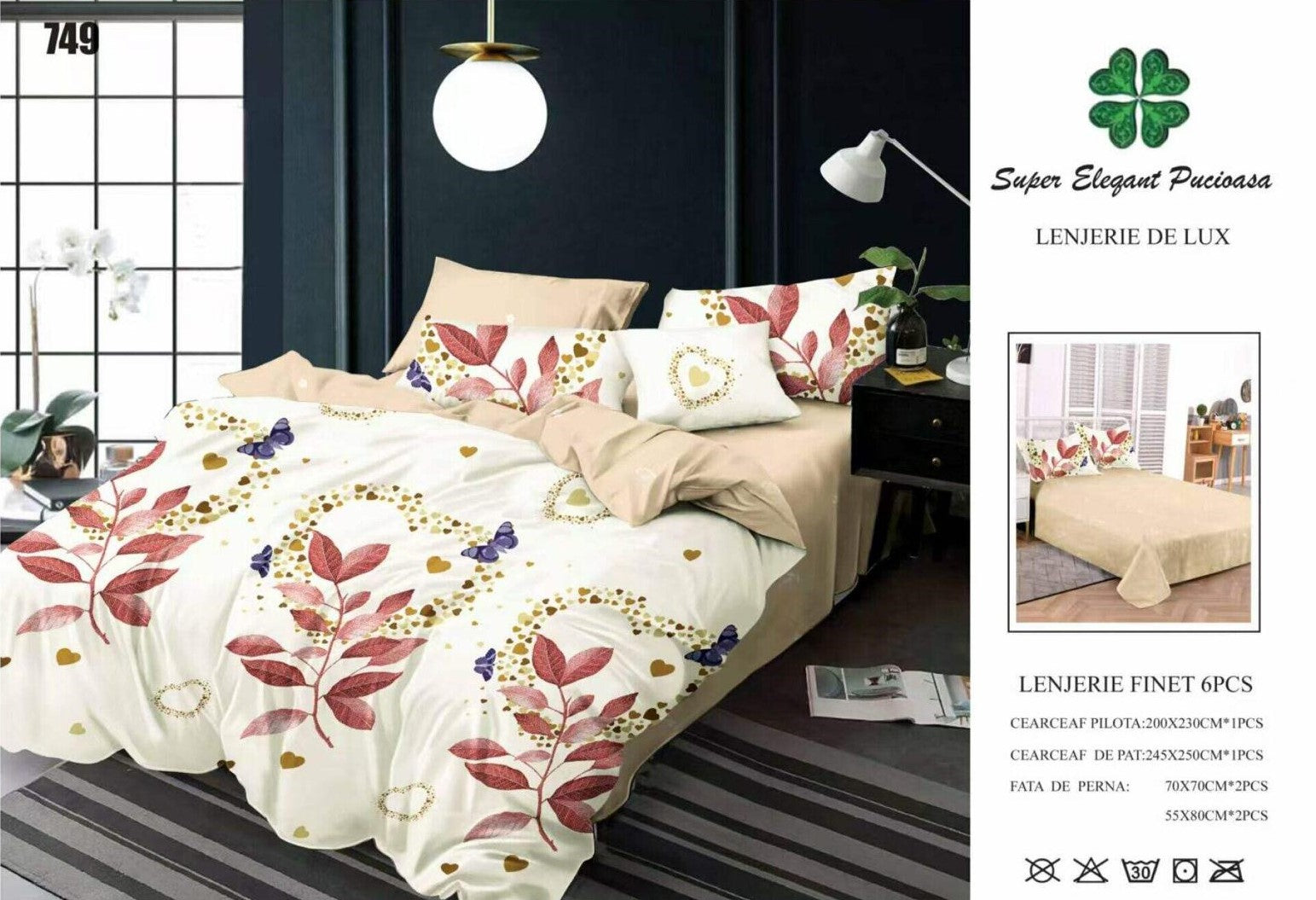 Lenjerie Pat Dublu din Finet, 6 Piese, Frunze/Fluturi-SEP9106