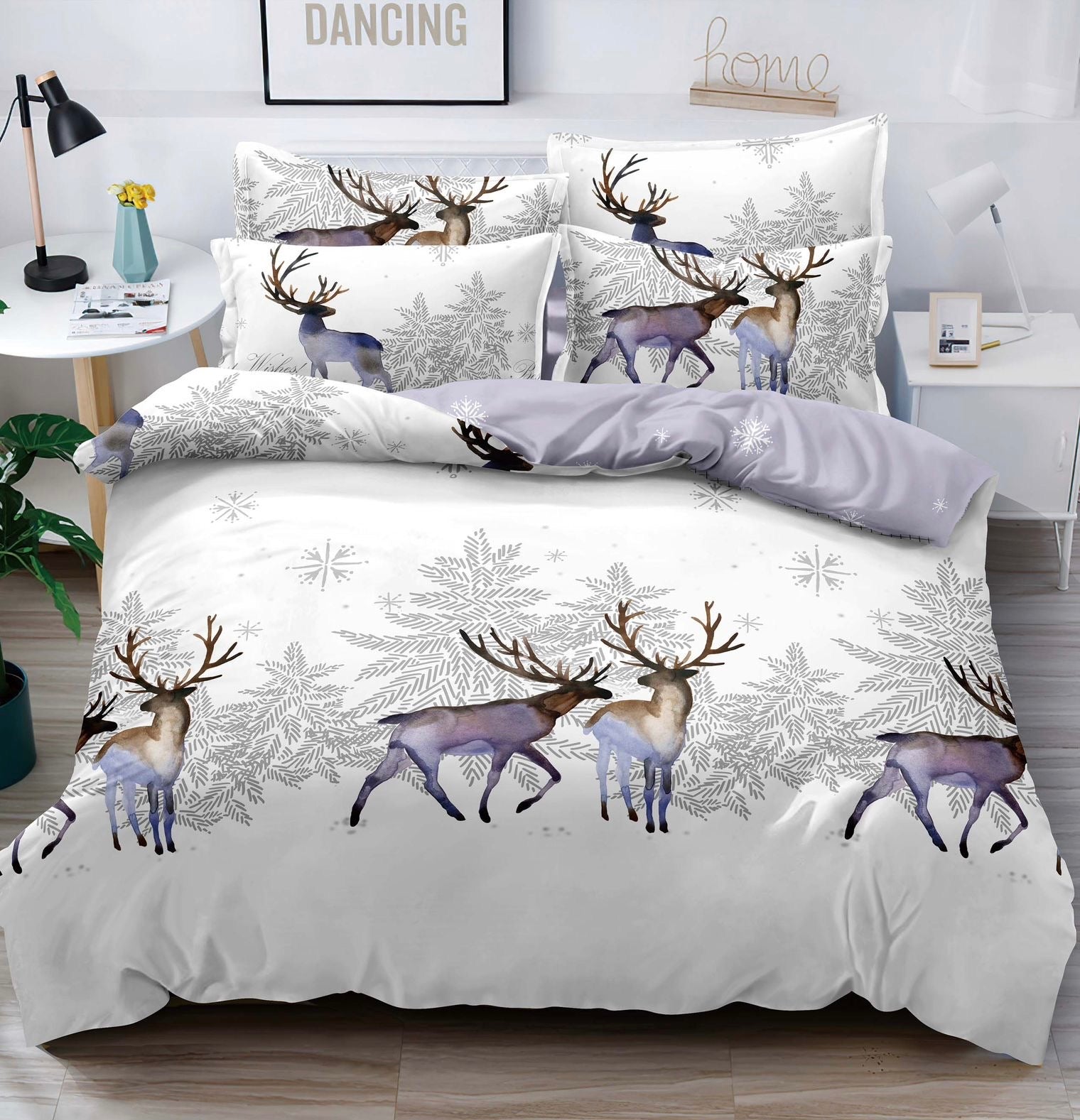 Lenjerie Pat Dublu din Finet, 6 Piese, Imprimeu Craciun-C10037