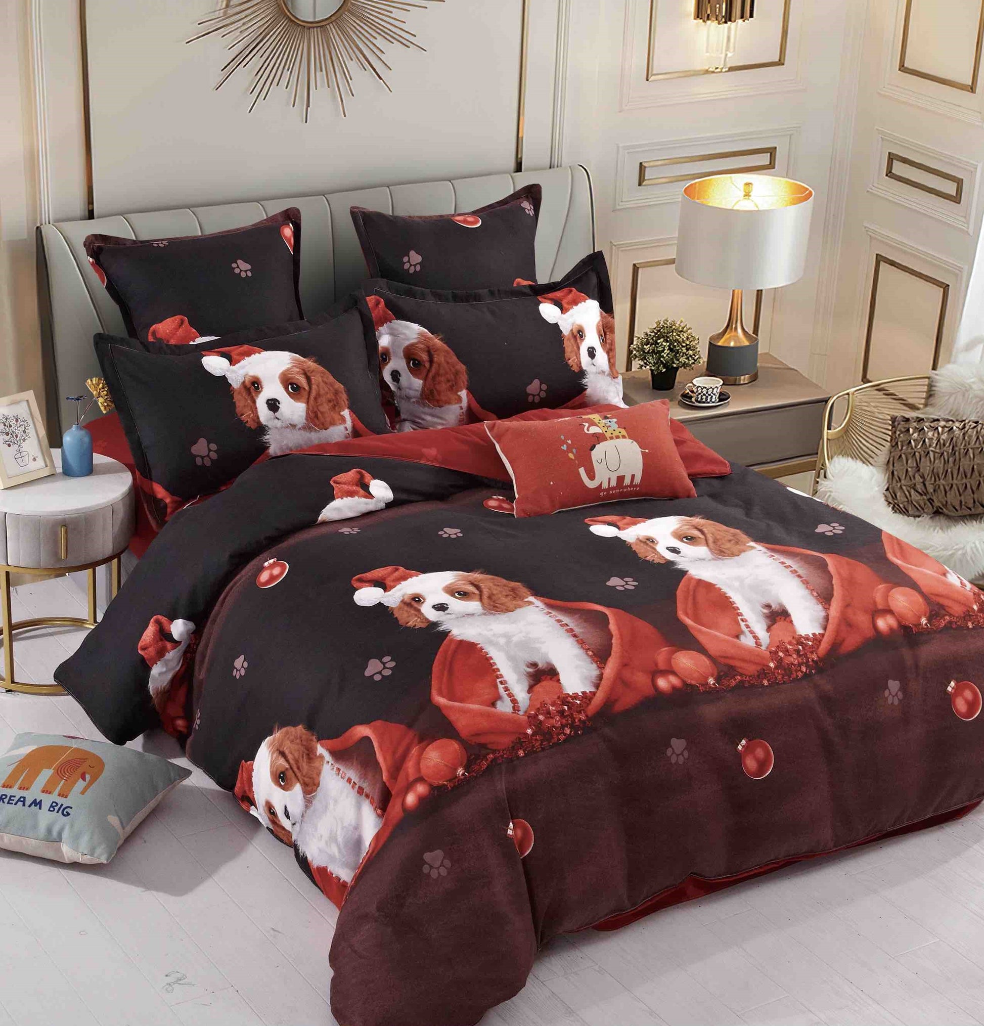 Lenjerie Pat Dublu din Finet, 6 Piese, Imprimeu Craciun-C9708