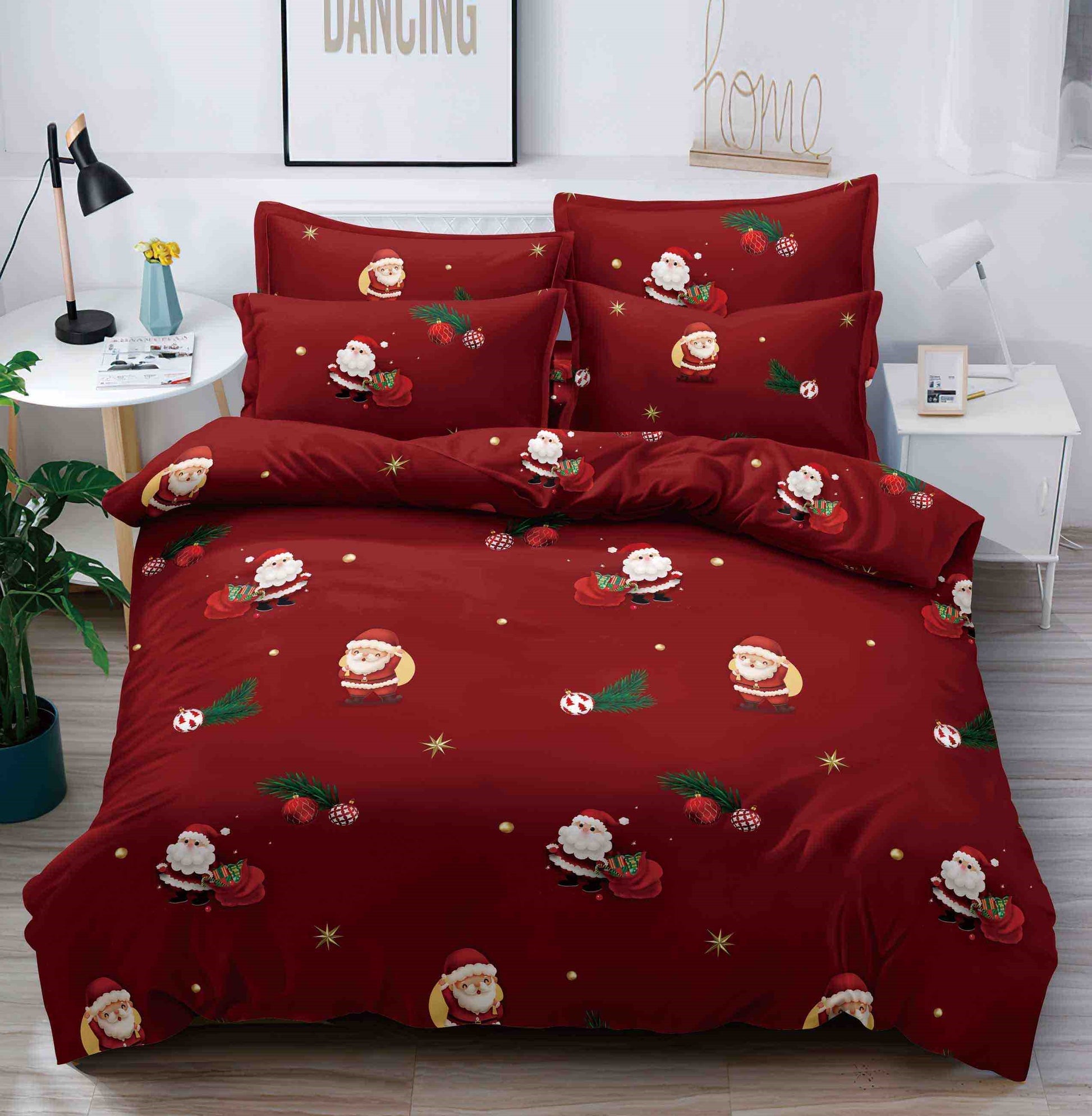 Lenjerie Pat Dublu din Finet, 6 Piese, Imprimeu Craciun-C9712