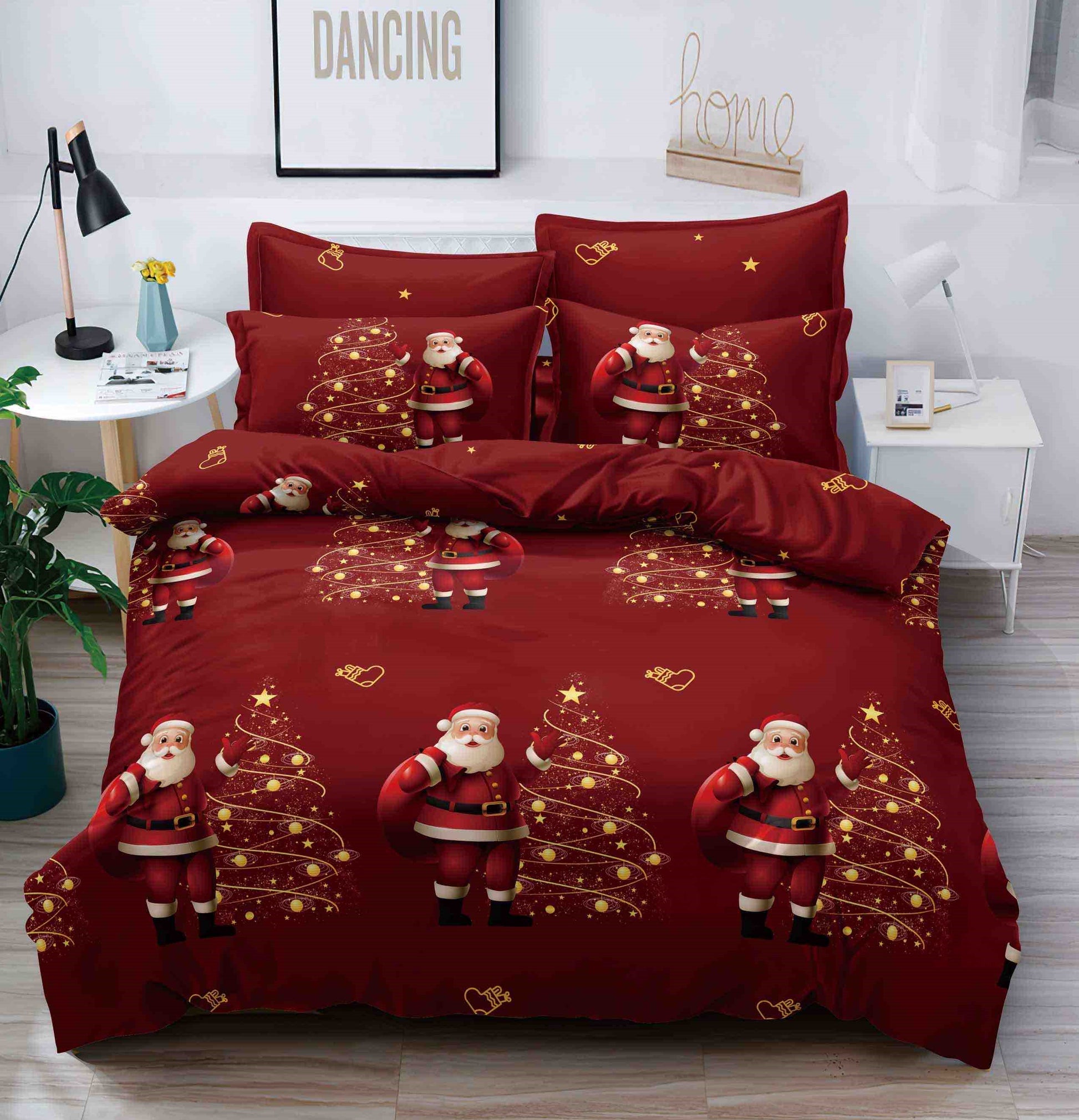 Lenjerie Pat Dublu din Finet, 6 Piese, Imprimeu Craciun-C9715