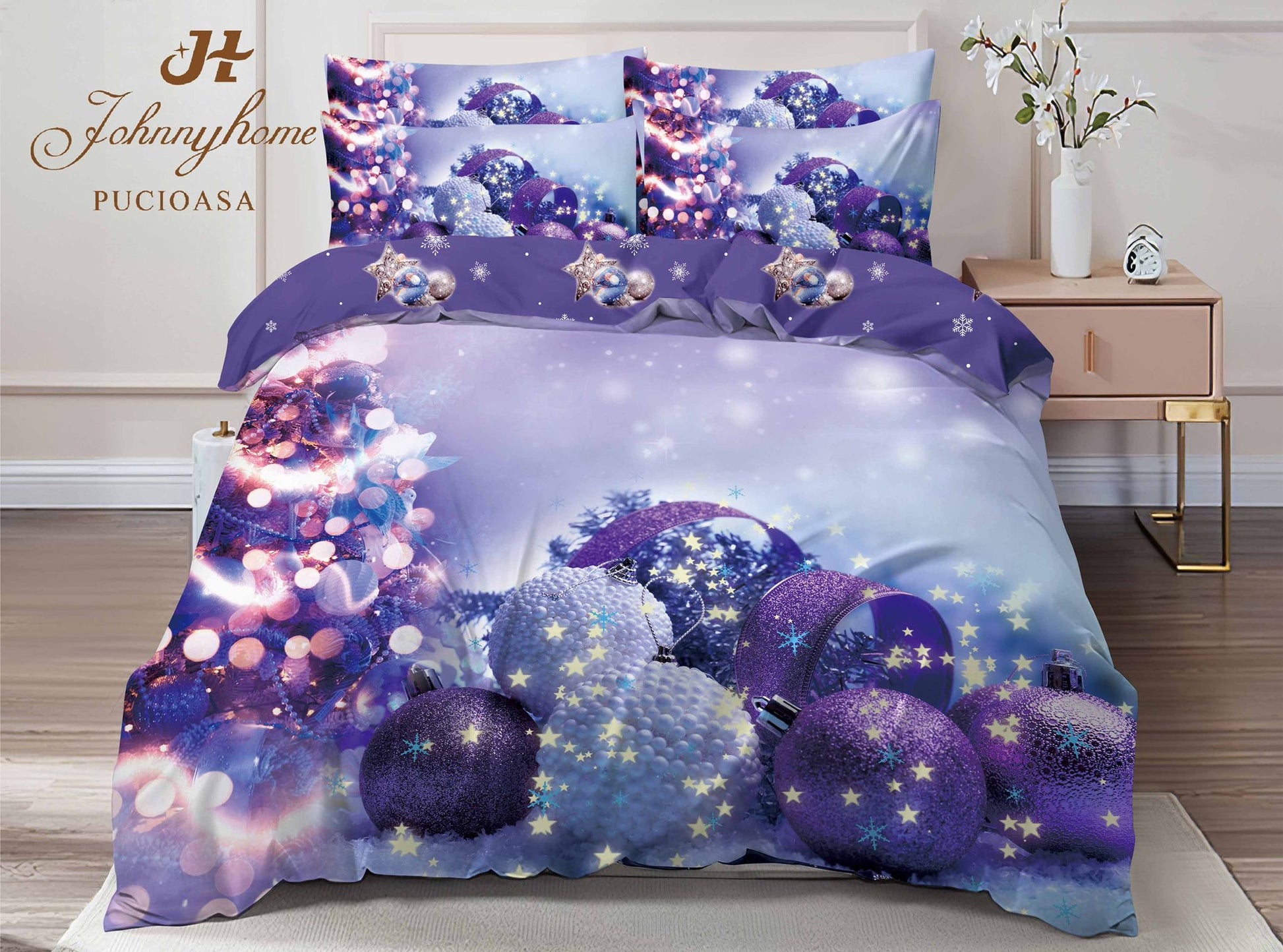 Lenjerie Pat Dublu din Finet, 6 Piese, Imprimeu Craciun Identic cu Poza-C10039