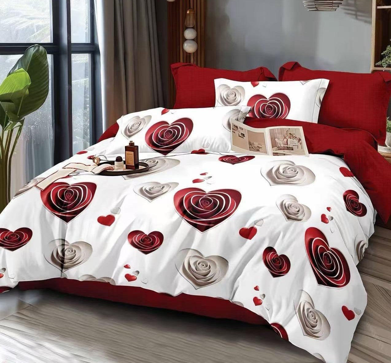 Lenjerie Pat Dublu din Finet, 6 Piese, Inimi-D9140