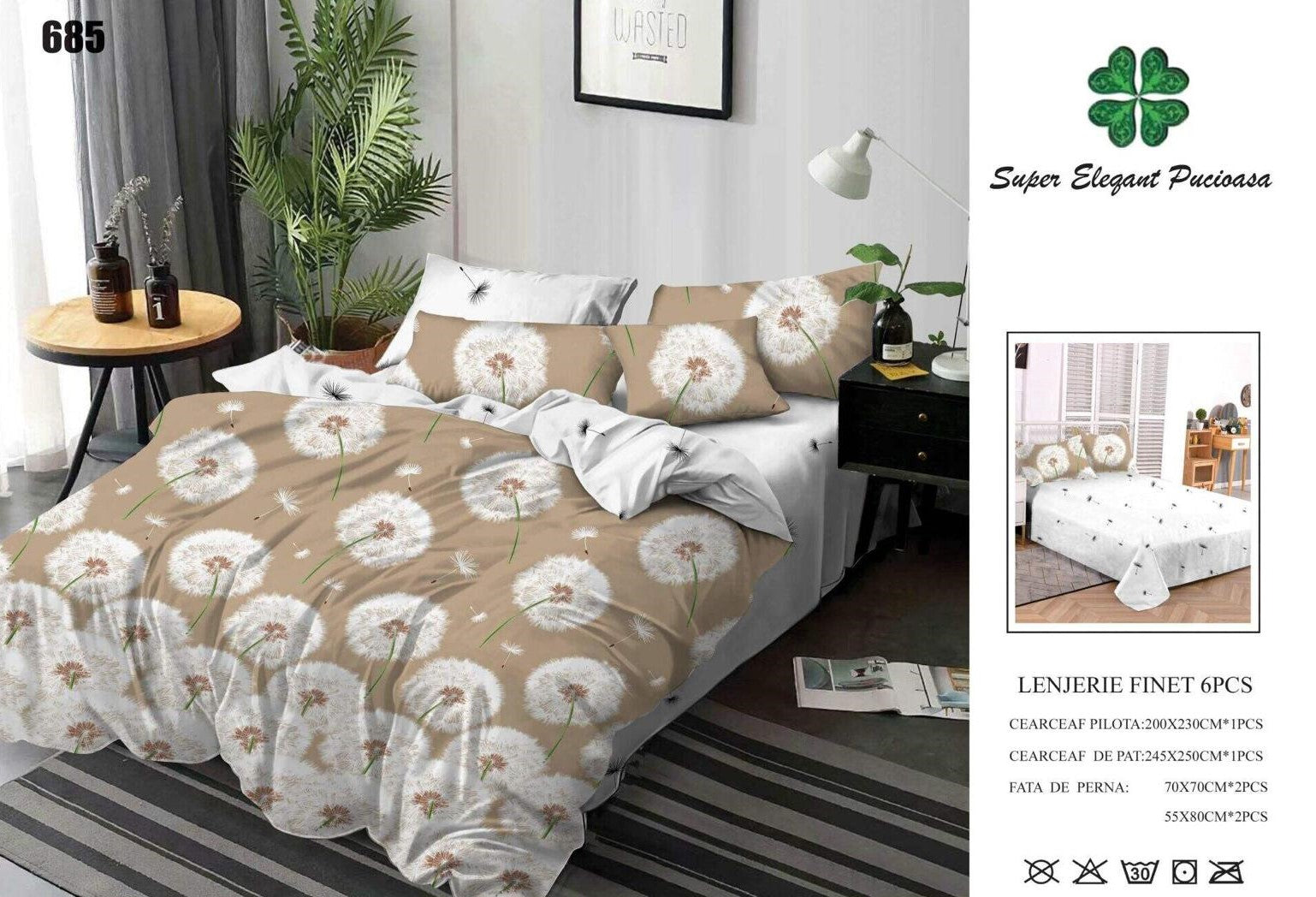 Lenjerie Pat Dublu din Finet, 6 Piese, Papadie-SEP9103