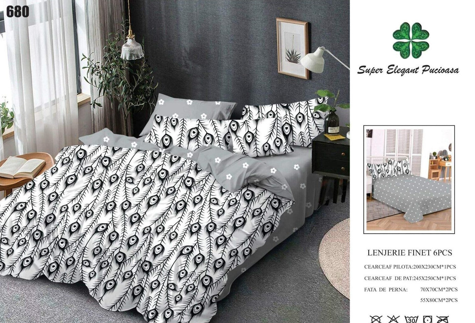Lenjerie Pat Dublu din Finet, 6 Piese, Pene de Paun-SEP9089