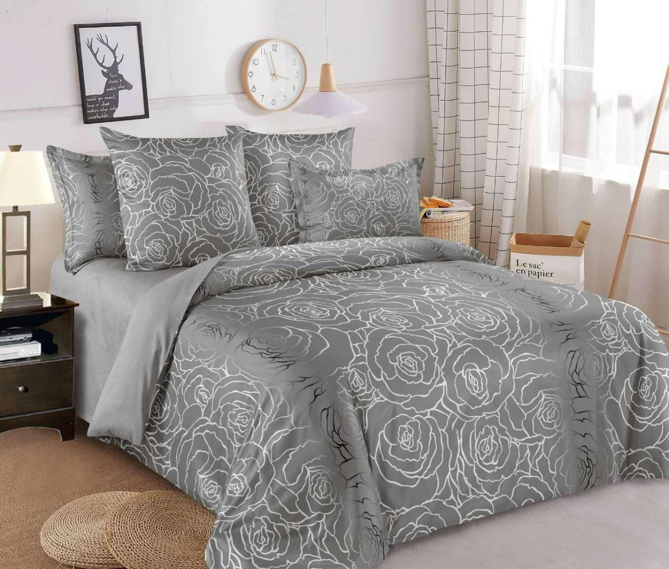 Lenjerie Pat Dublu din Finet, 6 Piese, Trandafiri-D9872