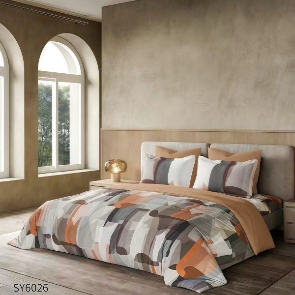 Lenjerie Pat Dublu din Finet Imprimat Digital, 6 Piese, cu Elastic, Geometric-P10227