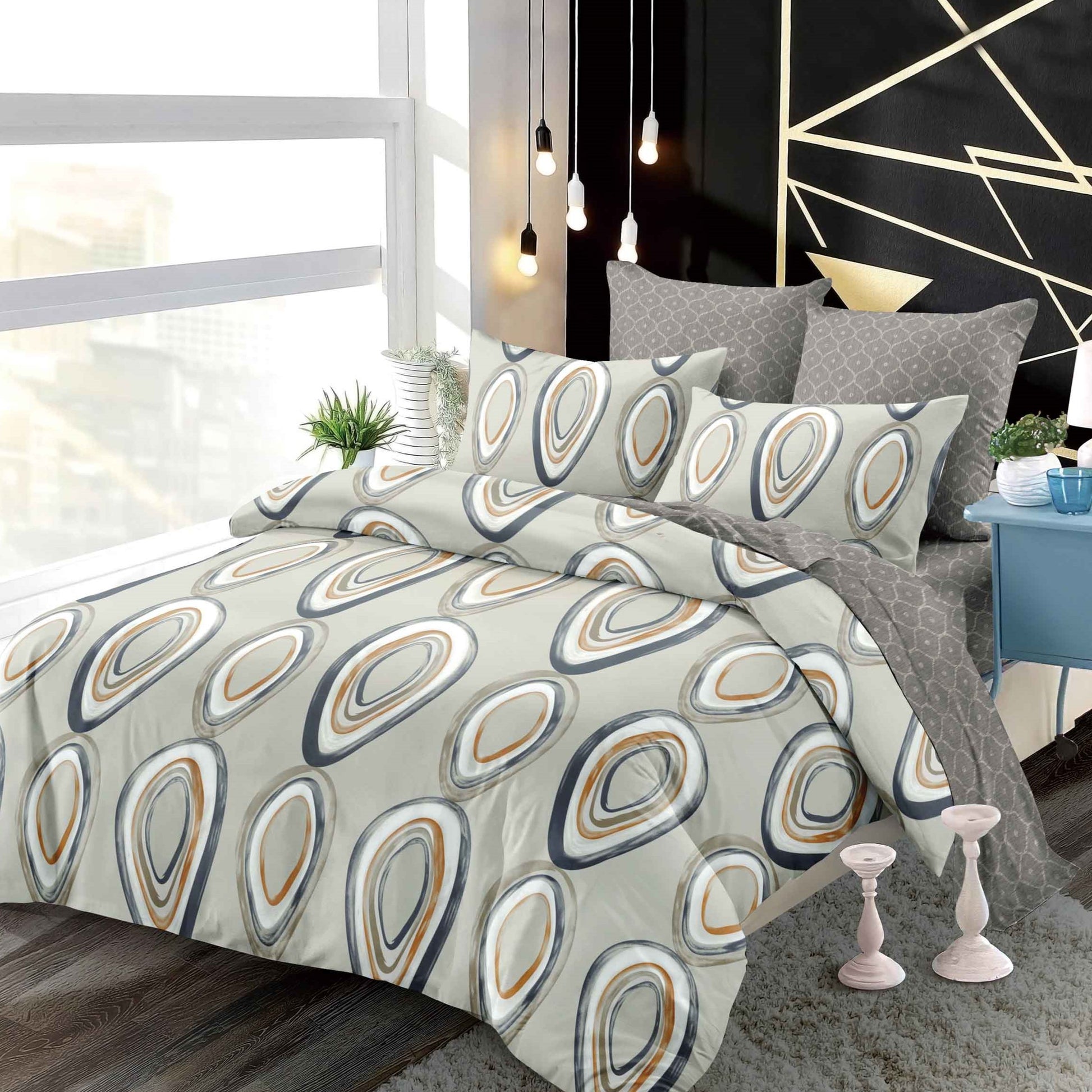 Lenjeria de pat are doua fete, pe o parte un imprimeu, pe cealalta alt imprimeu, astfe ca poti de fiecare data sa schimbi decorul camerei.
