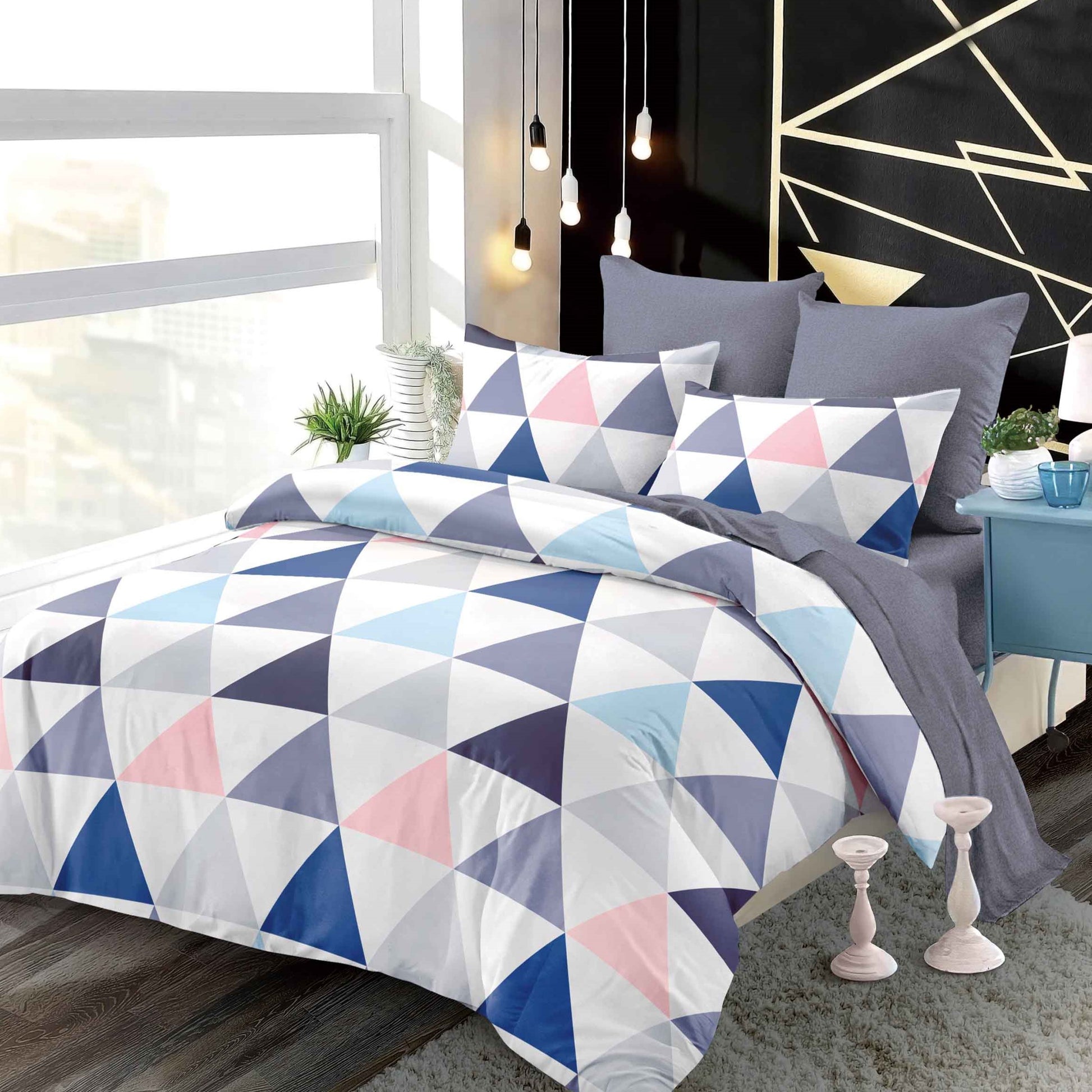 Lenjeria de pat are doua fete, pe o parte un imprimeu, pe cealalta alt imprimeu, astfe ca poti de fiecare data sa schimbi decorul camerei.