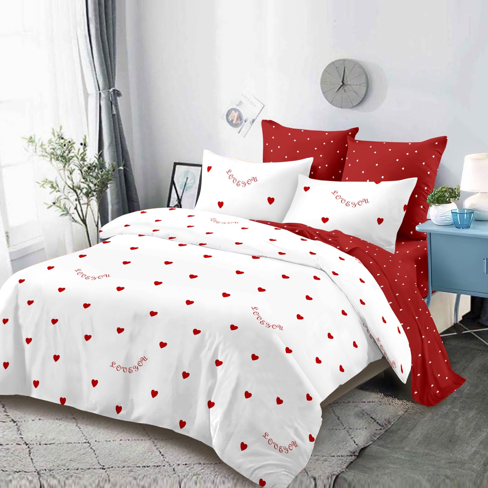 Lenjeria de pat are doua fete, pe o parte un imprimeu, pe cealalta alt imprimeu, astfe ca poti de fiecare data sa schimbi decorul camerei.