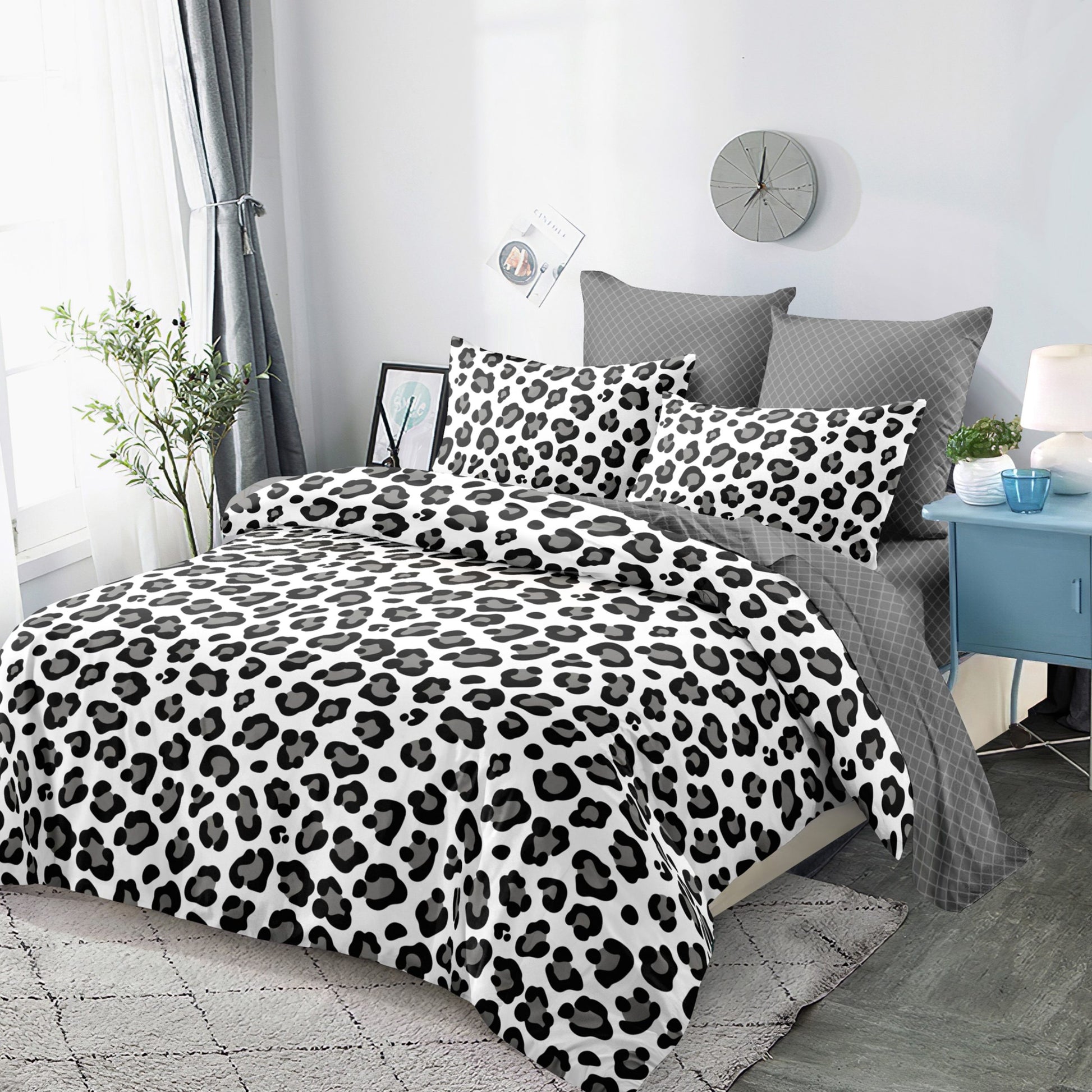 Lenjeria de pat are doua fete, pe o parte un imprimeu, pe cealalta alt imprimeu, astfe ca poti de fiecare data sa schimbi decorul camerei.