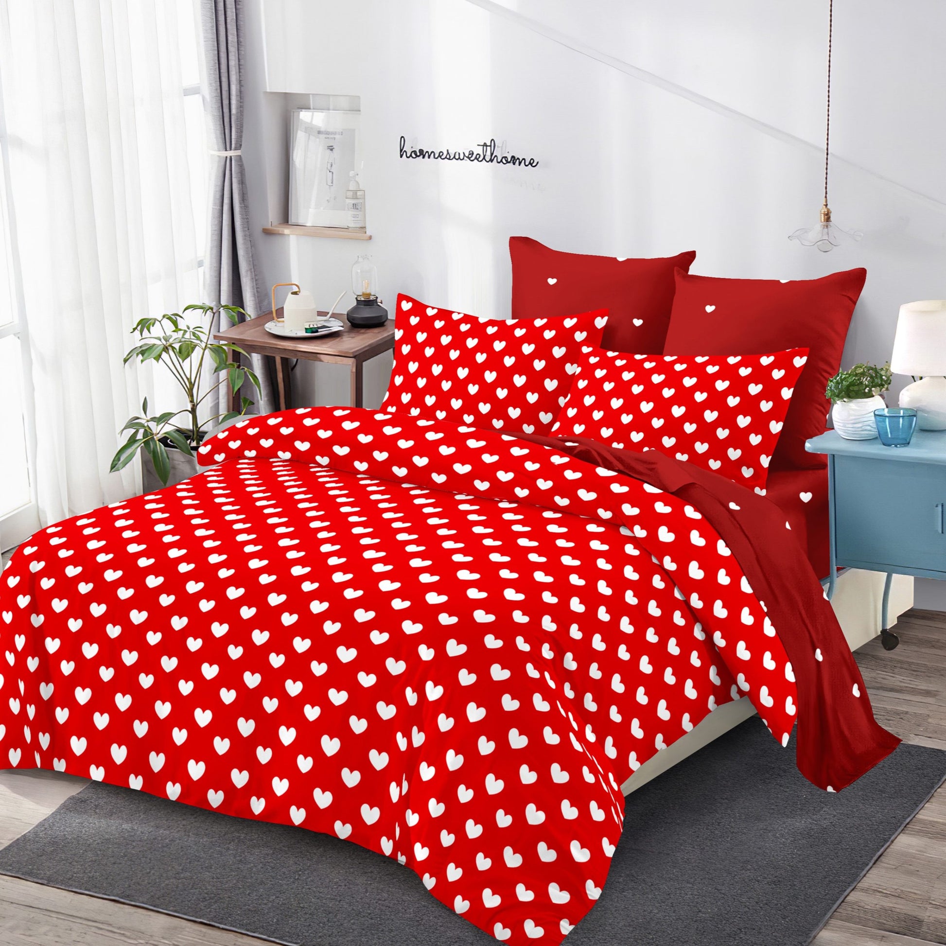 Lenjeria de pat are doua fete, pe o parte un imprimeu, pe cealalta alt imprimeu, astfe ca poti de fiecare data sa schimbi decorul camerei.