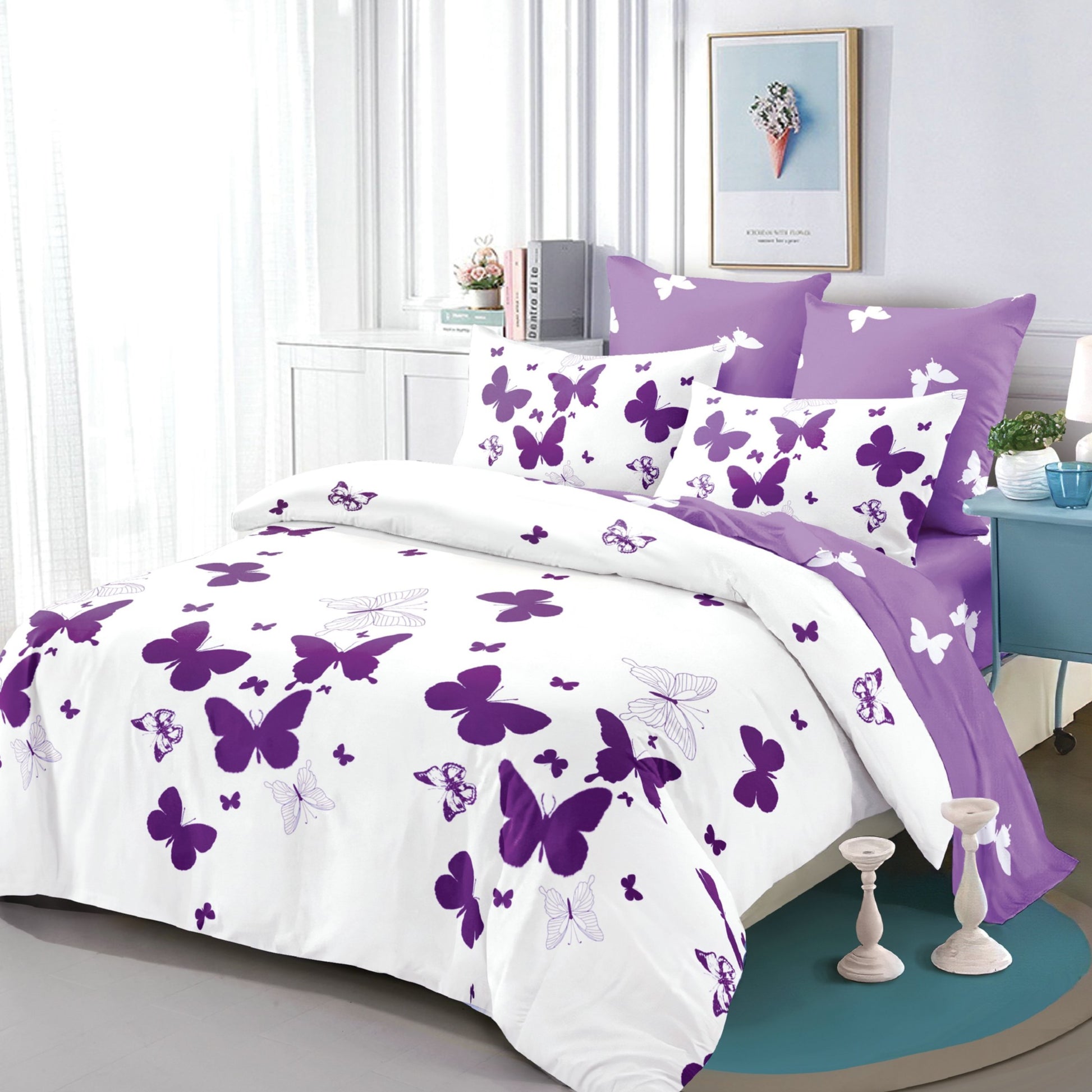 Lenjeria de pat are doua fete, pe o parte un imprimeu, pe cealalta alt imprimeu, astfe ca poti de fiecare data sa schimbi decorul camerei.