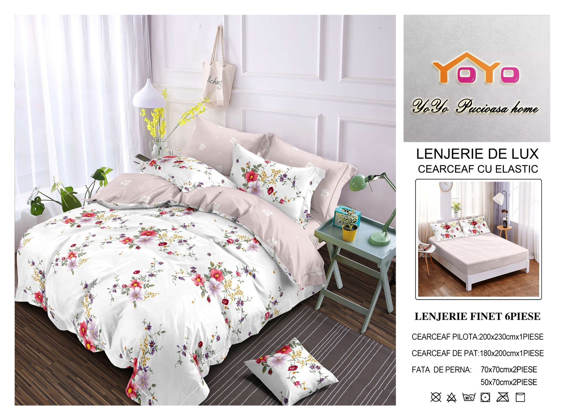 Lenjerie Pat Dublu din Finet Superior, 6 Piese, cu Elastic-YO9593