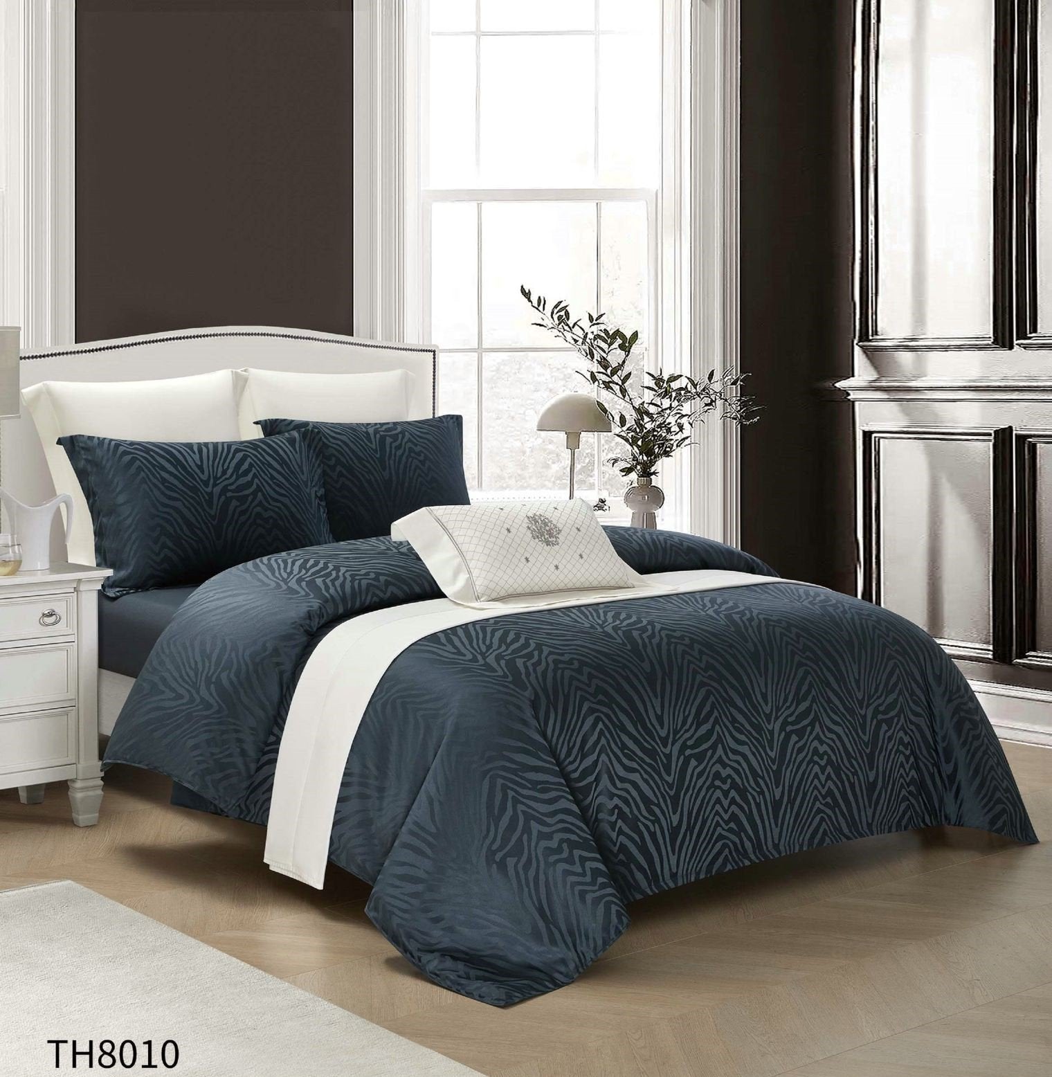Lenjerie Pat Dublu din Jacquard Satinat Extra Fin, 4 Piese, cu Elastic, Bleumarin-P7474