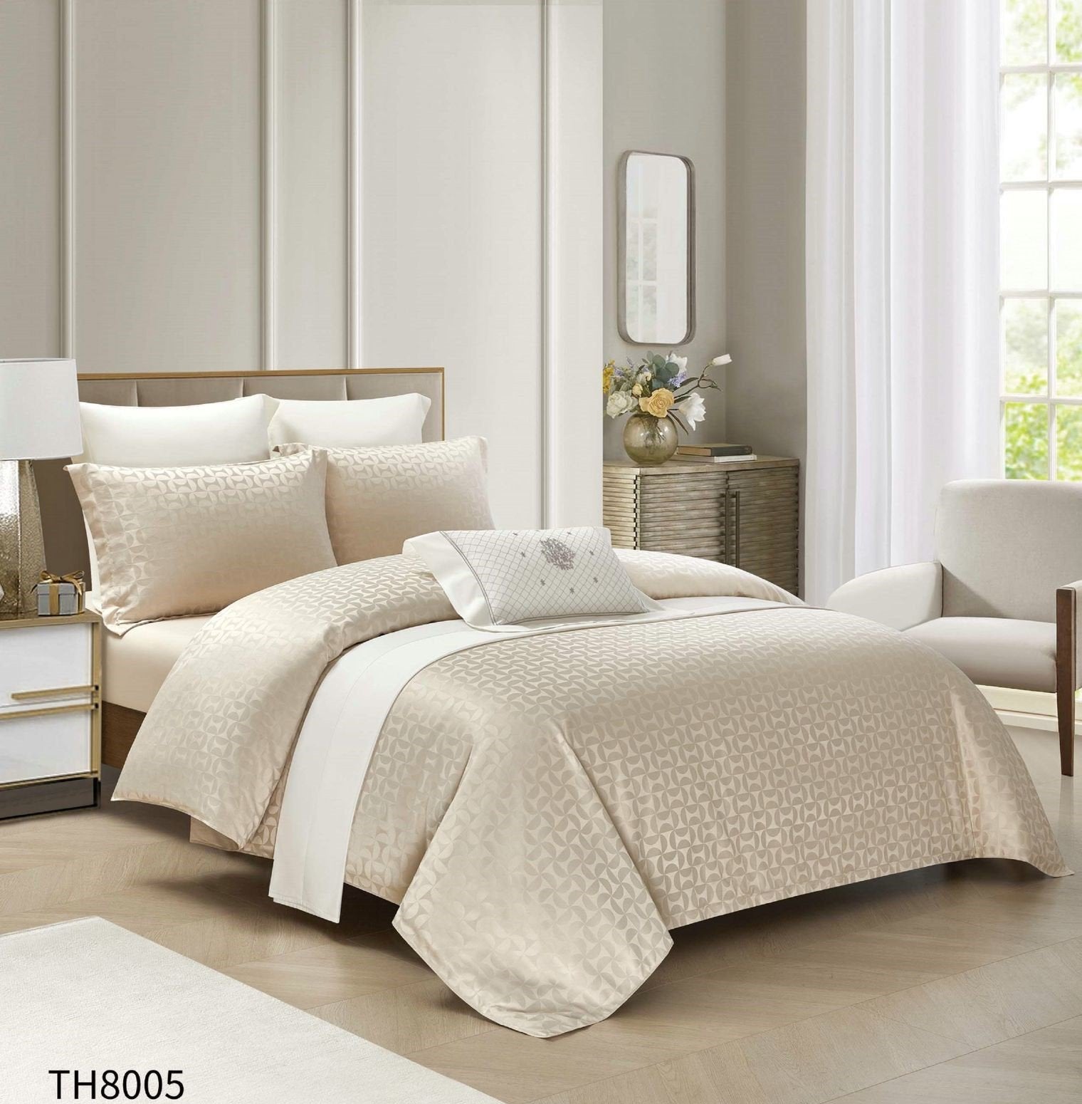 Lenjerie Pat Dublu din Jacquard Satinat Extra Fin, 4 Piese, cu Elastic, Crem-P7476