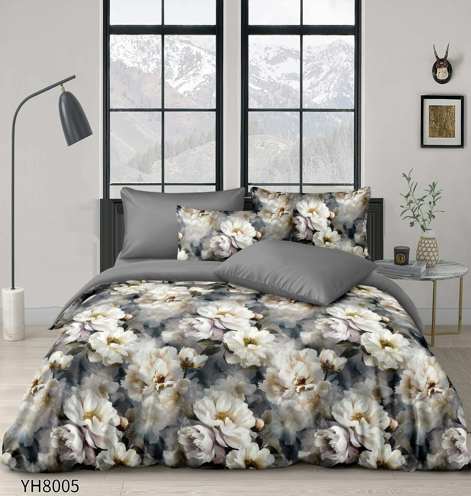 Lenjerie Pat Dublu din Satin, 4 Piese, cu Elastic, Floricele-P9929