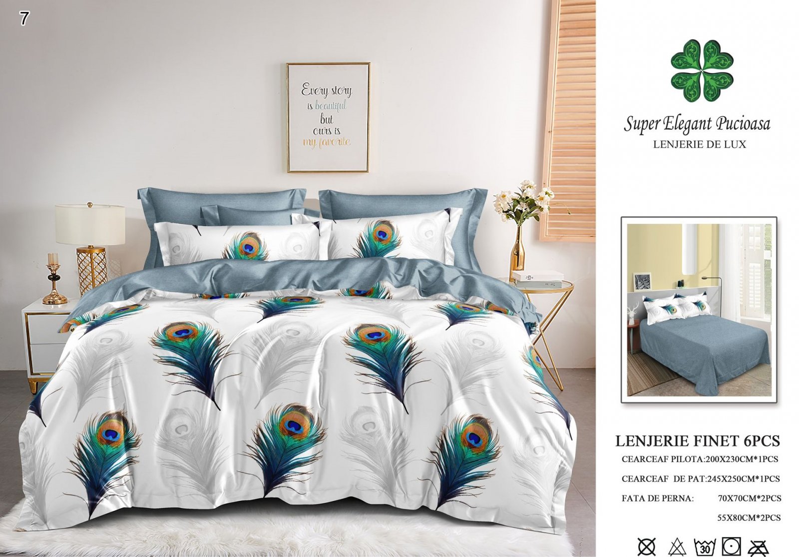 Lenjerie Pat Dublu, Finet, 6 Piese, Alb/Pene-SEP7054
