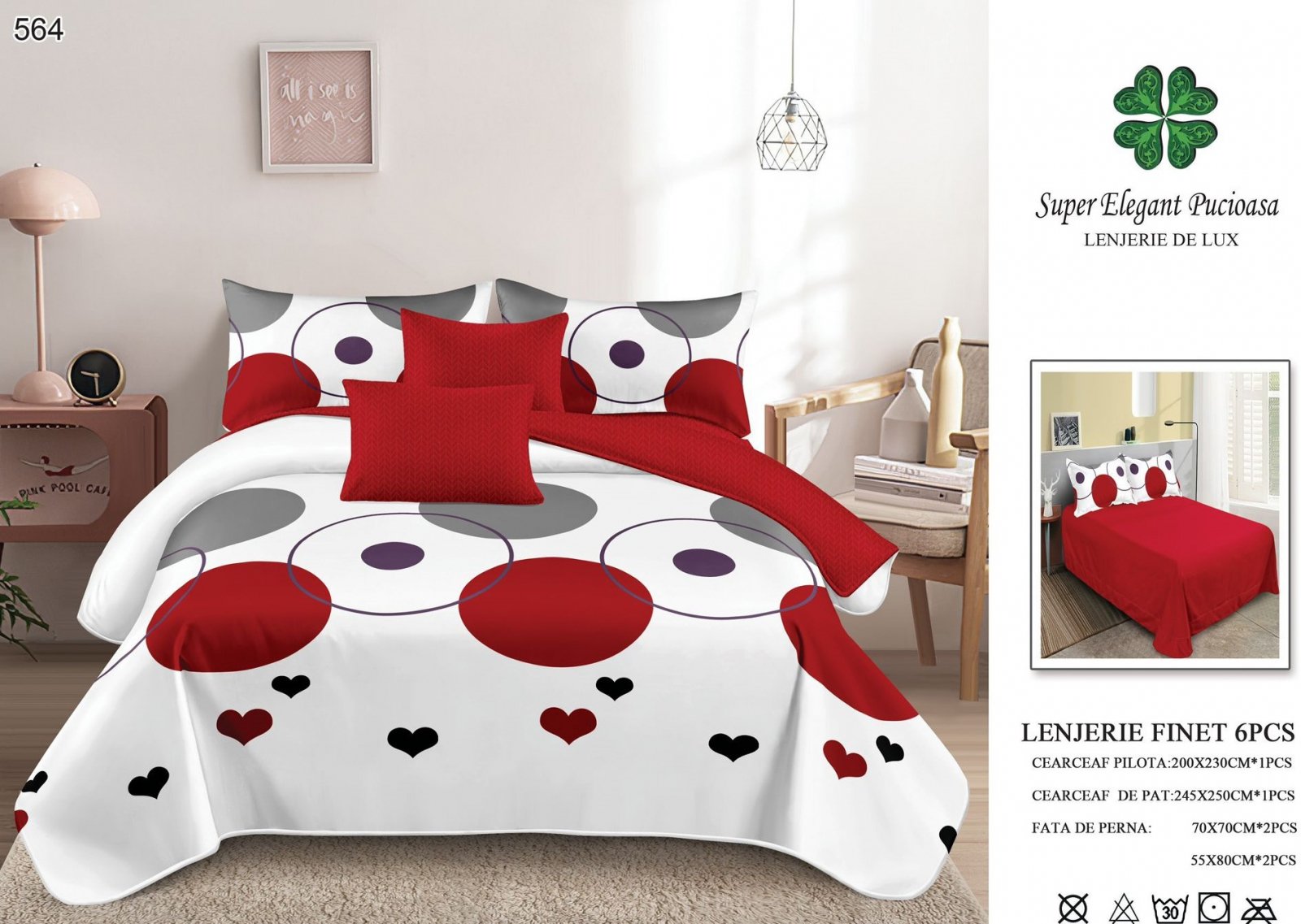 Lenjerie Pat Dublu, Finet, 6 Piese, Cercuri/Inimi-SEP7055