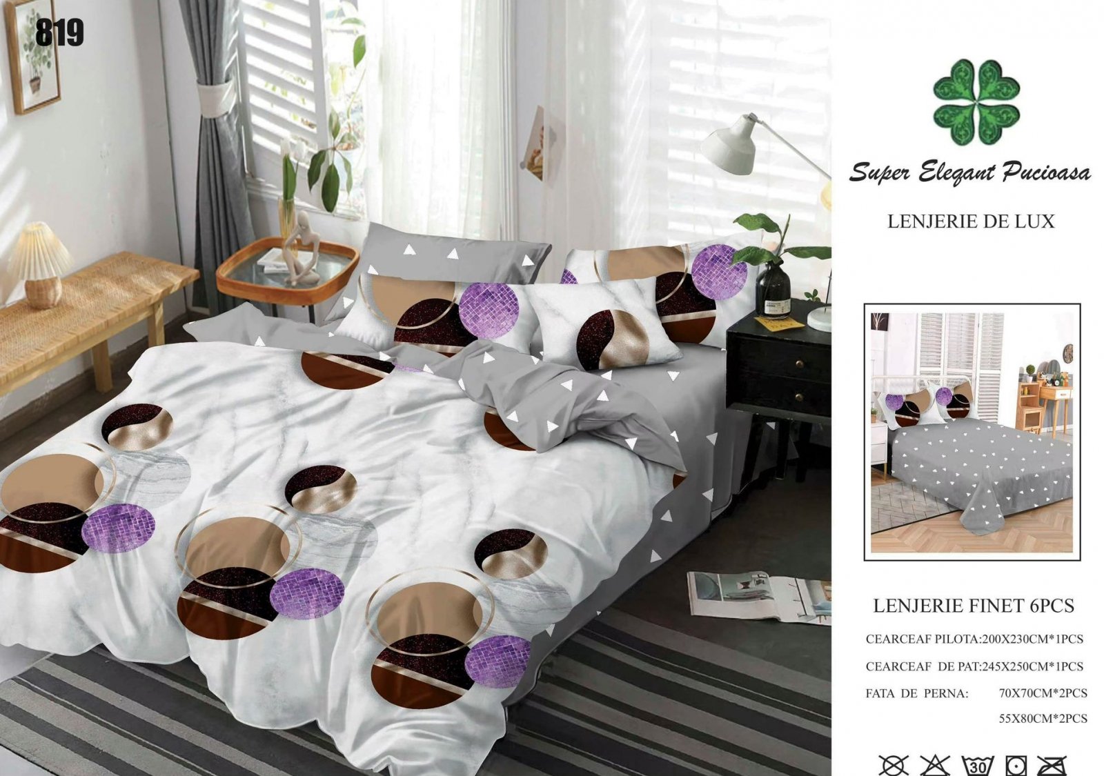 Lenjerie Pat Dublu, Finet, 6 Piese, Forme Geometrice-SEP7039