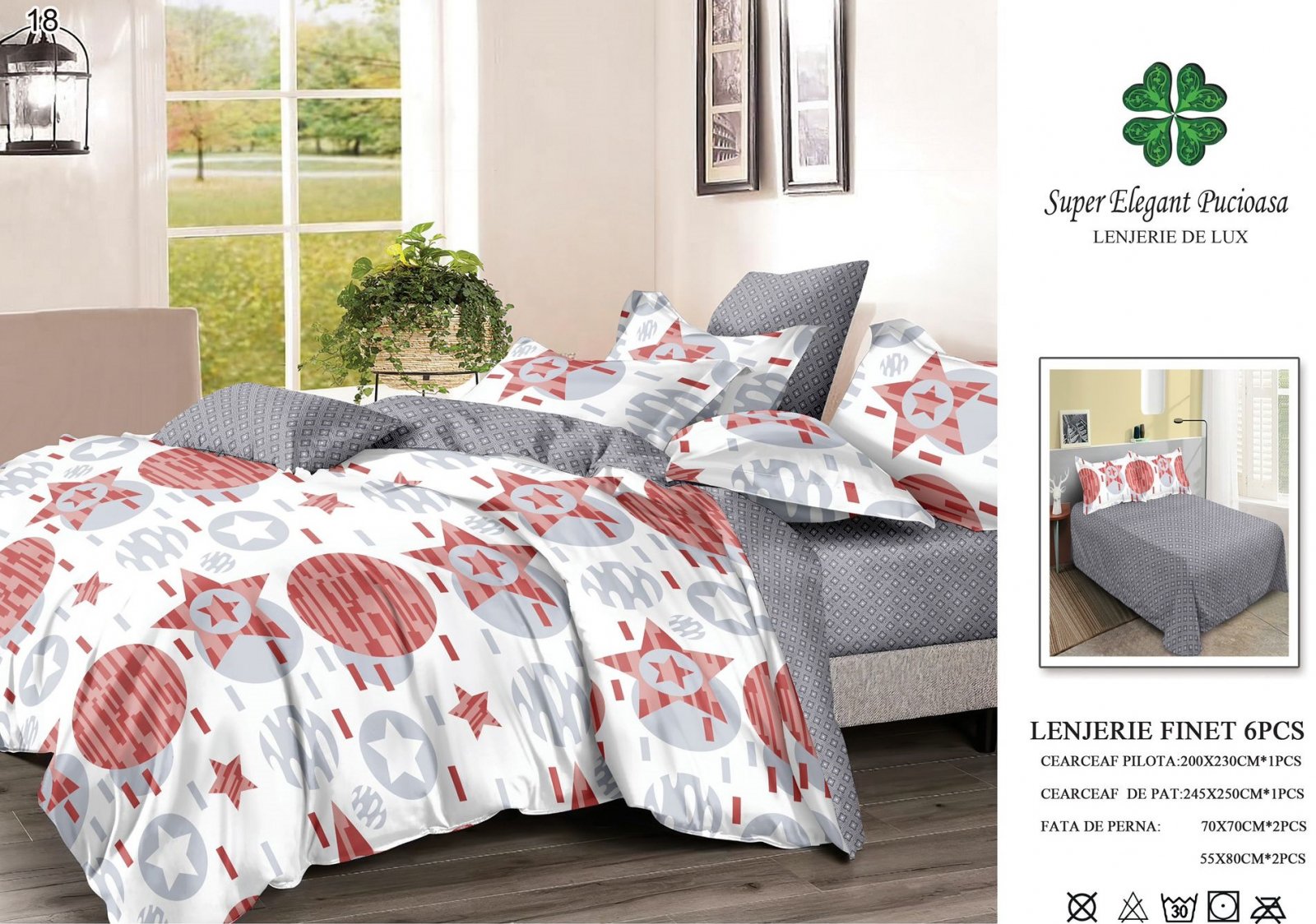 Lenjerie Pat Dublu, Finet, 6 Piese, Gri/Stelute-SEP7049