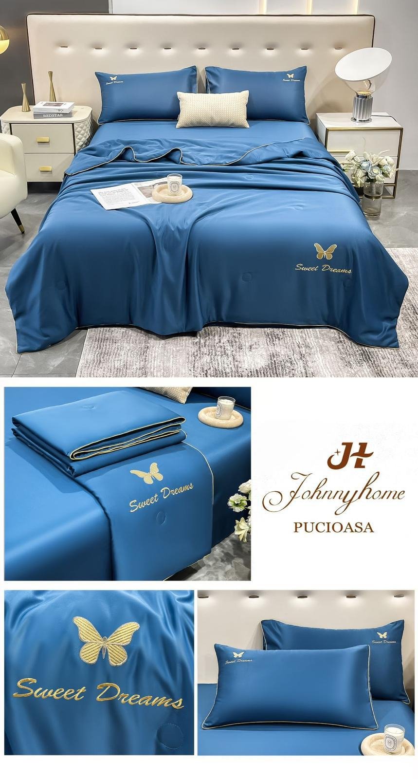Lenjerie 3 Piese+Pilota Subtire, din Matase, Bleumarin-H6438