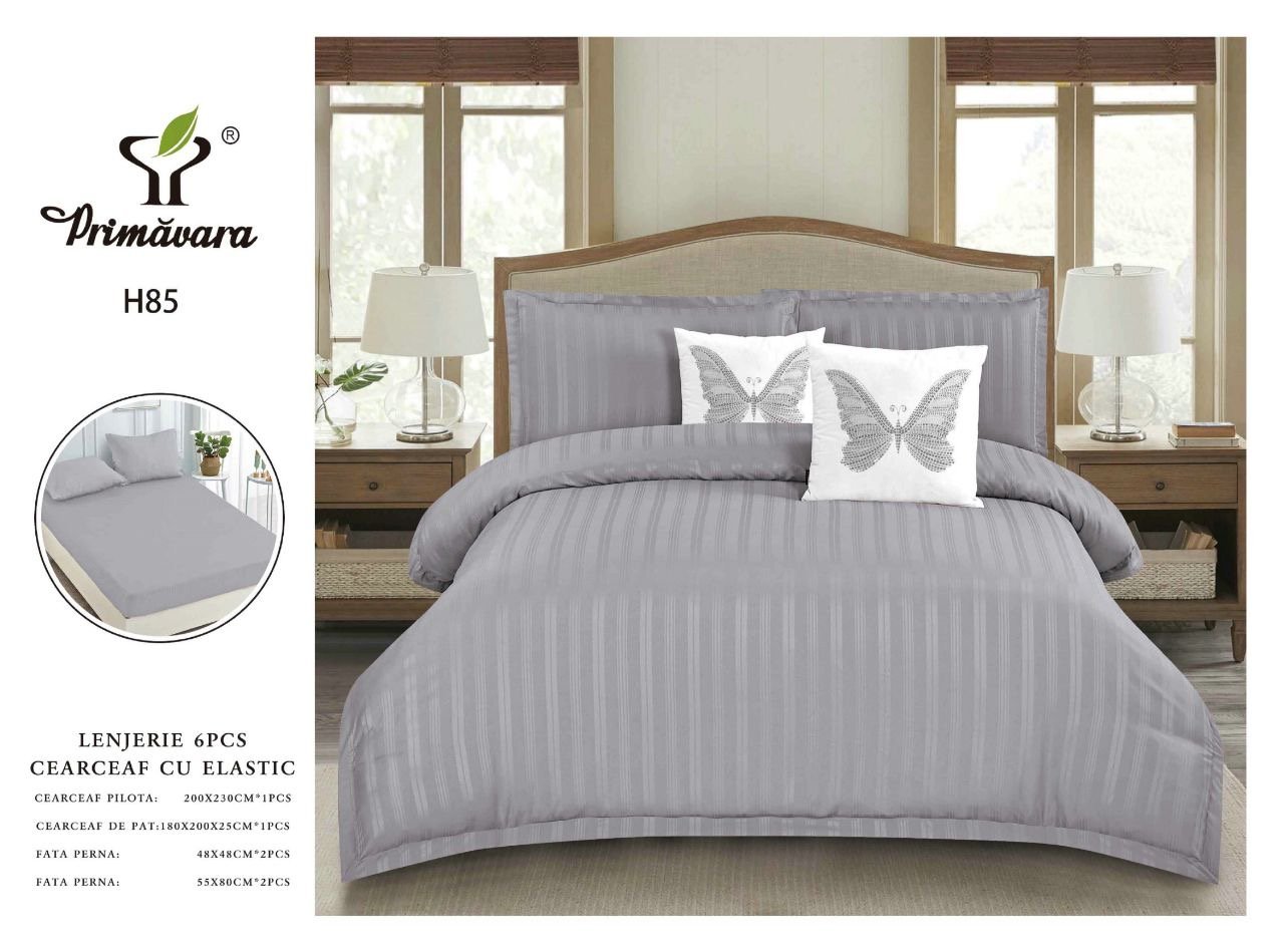 Lenjerie Bumbac Damasc 6 Piese cu Elastic, Gri Deschis-P5295