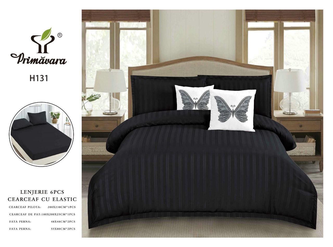 Lenjerie Bumbac Damasc 6 Piese cu Elastic, Negru-P5287