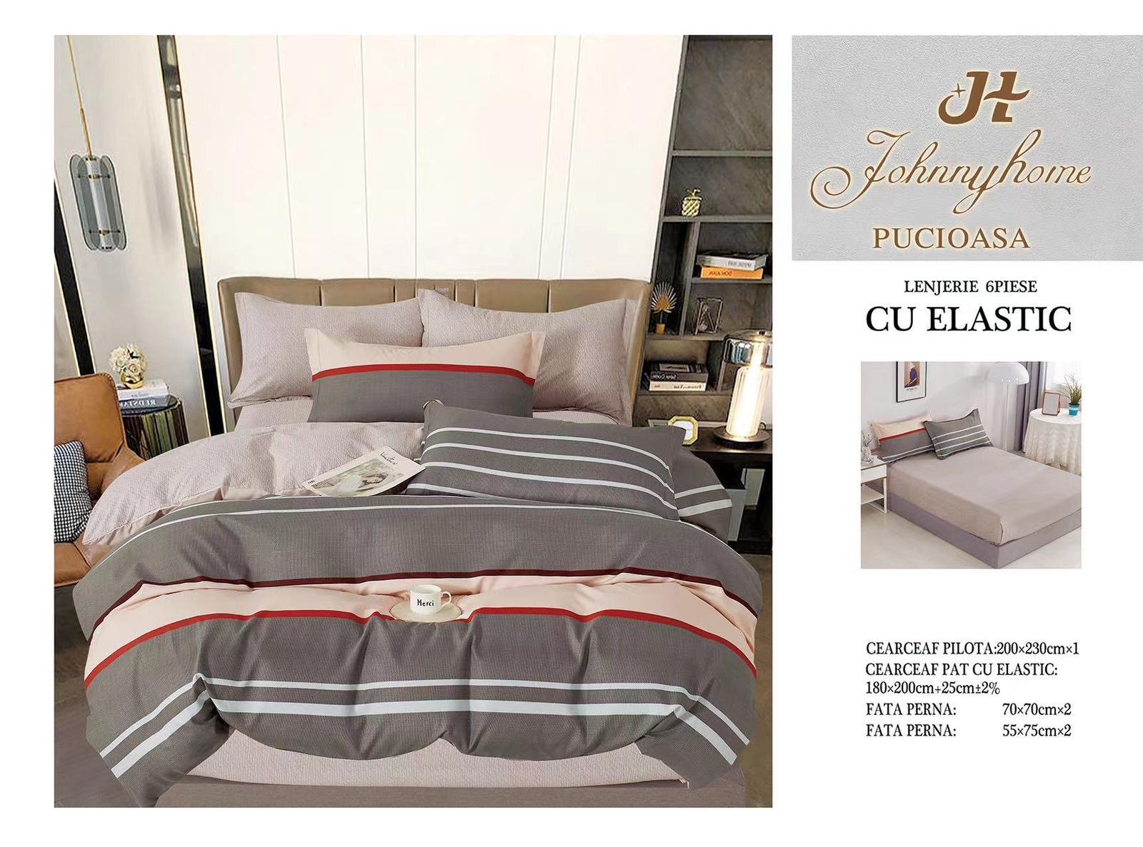 Lenjerie de Pat Finet 6 Piese cu Elastic, Dungi-H6169