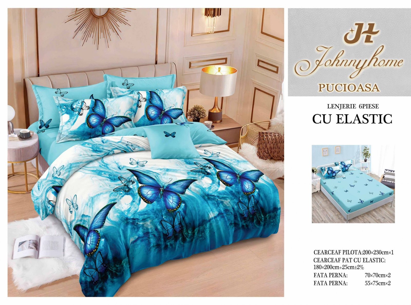 Lenjerie de Pat Finet 6 Piese cu Elastic, Fluturi-H7626