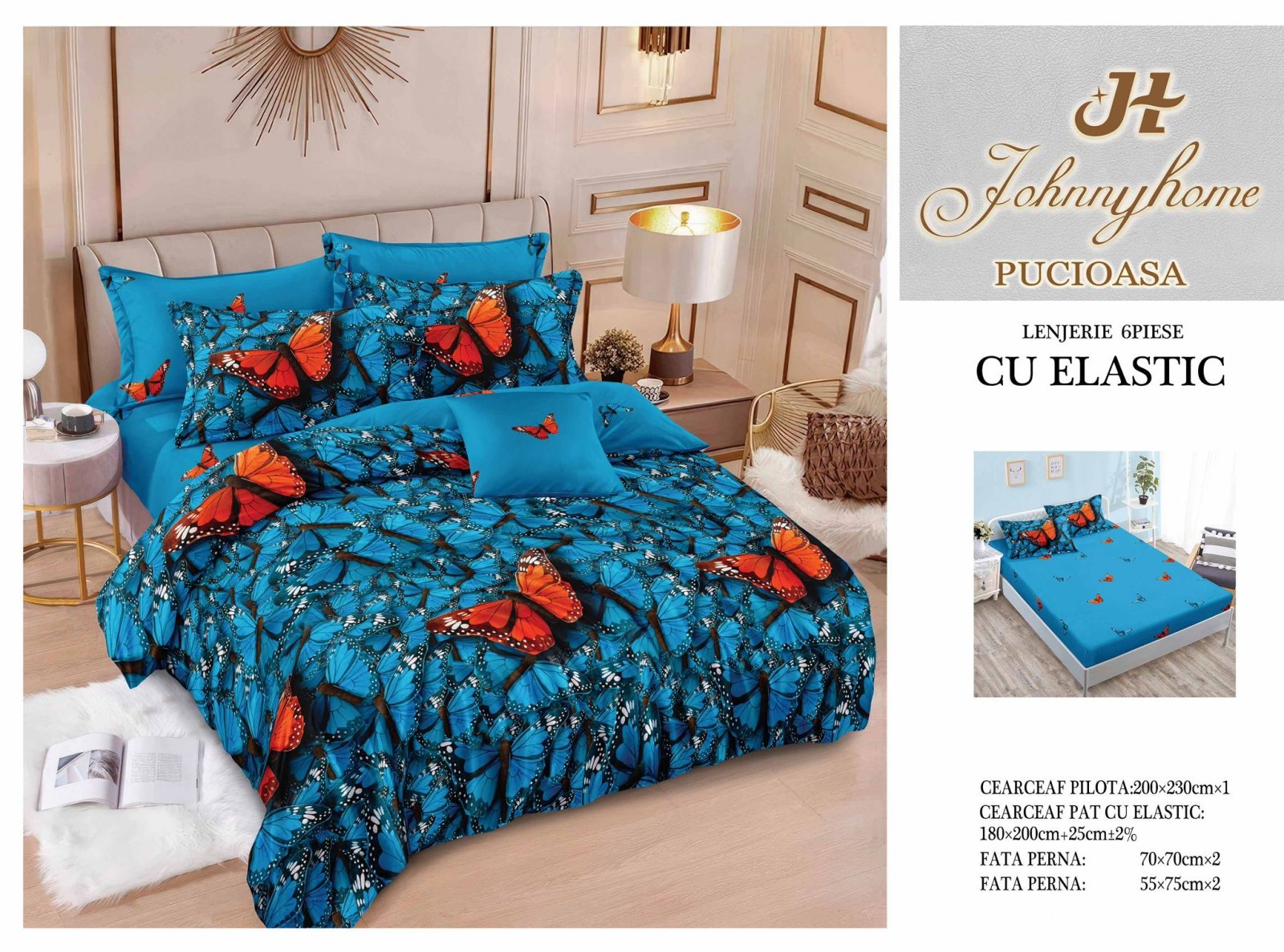 Lenjerie de Pat Finet 6 Piese cu Elastic, Fluturi-H7634