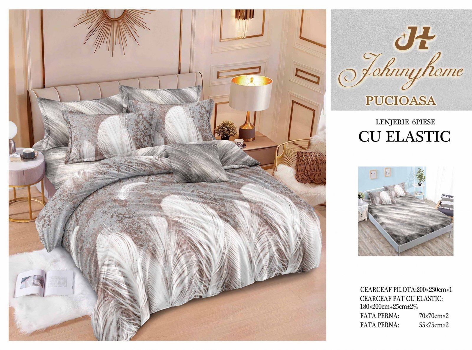 Lenjerie de Pat Finet 6 Piese cu Elastic, Pene-H7631