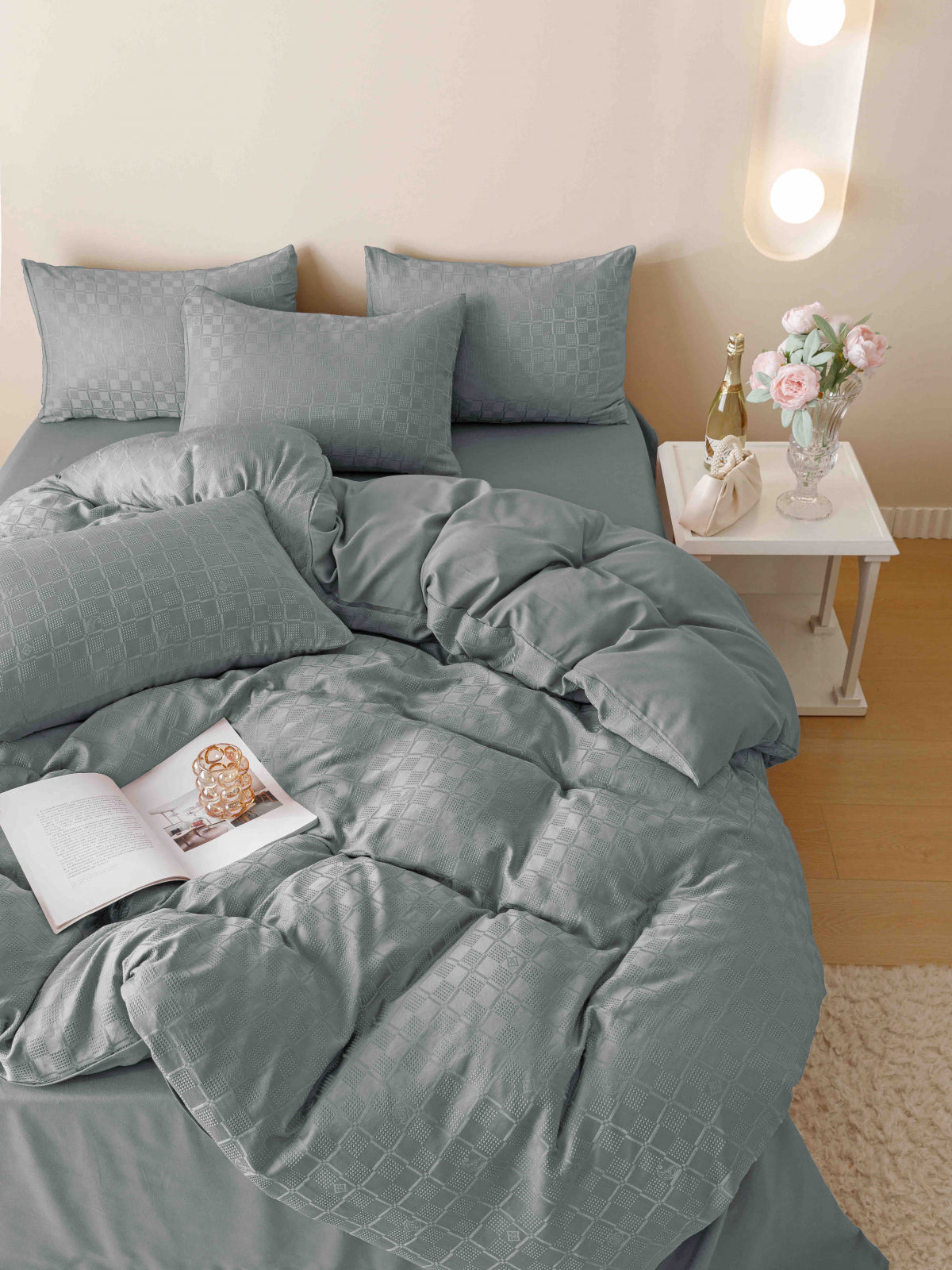 Lenjerie de pat Jacquard Finetat, 6 Piese, Gri Deschis