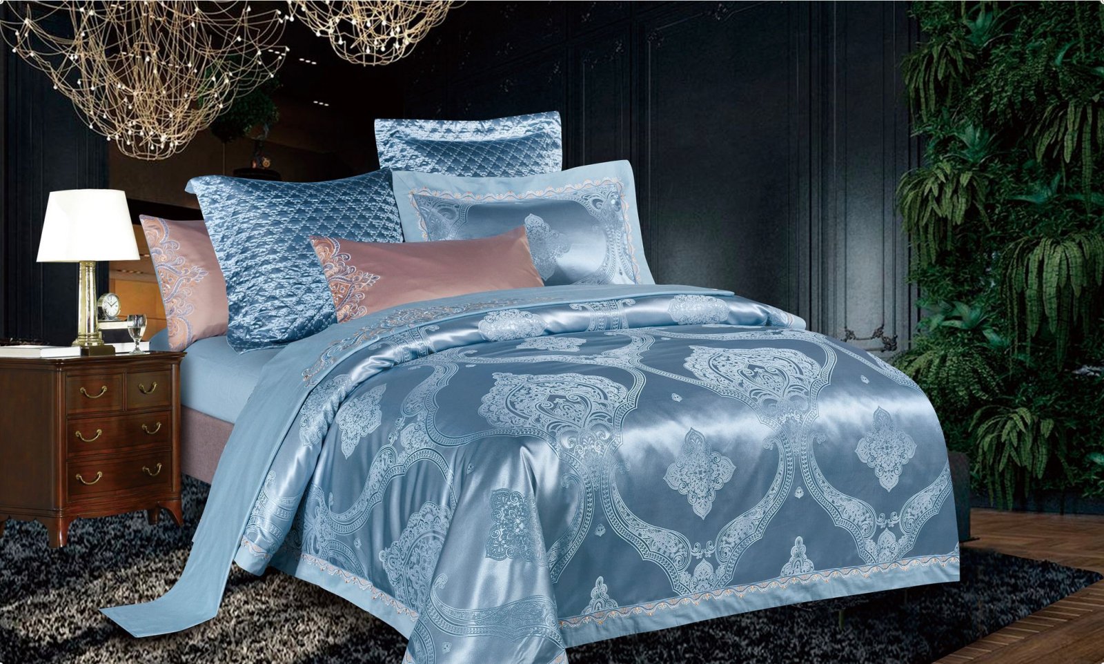 Lenjerie de pat Jacquard Satinat Premium, 6 Piese, Albastru/Model Regal-V6447