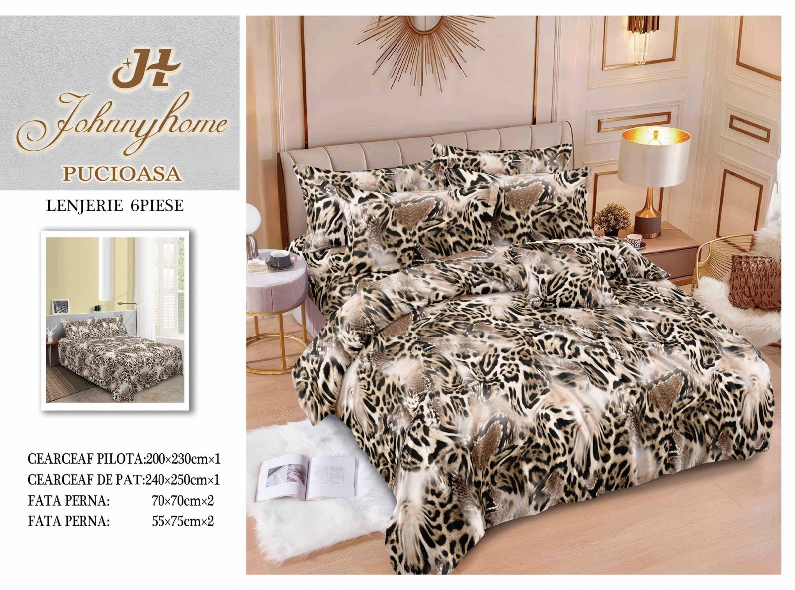 Lenjerie Pat Dublu din Finet, 6 Piese, Animal Print-H7696