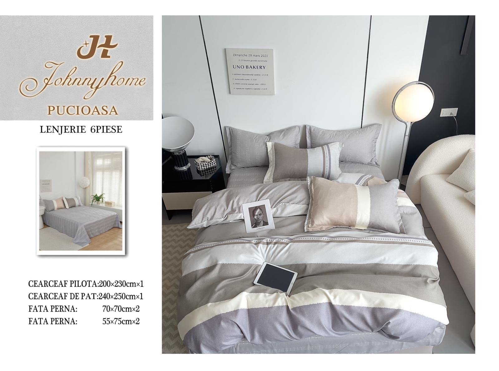 Lenjerie Pat Dublu din Finet, 6 Piese, Dungi-H7654