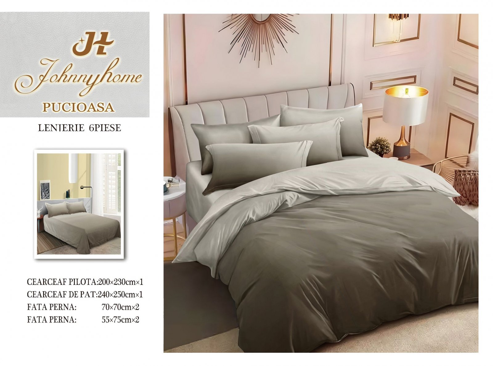 Lenjerie Pat Dublu din Finet, 6 Piese, Kaki Degrade-H7552