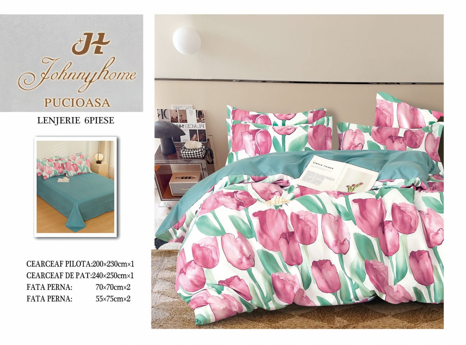- Cearceaf de plapuma : 200x230cm