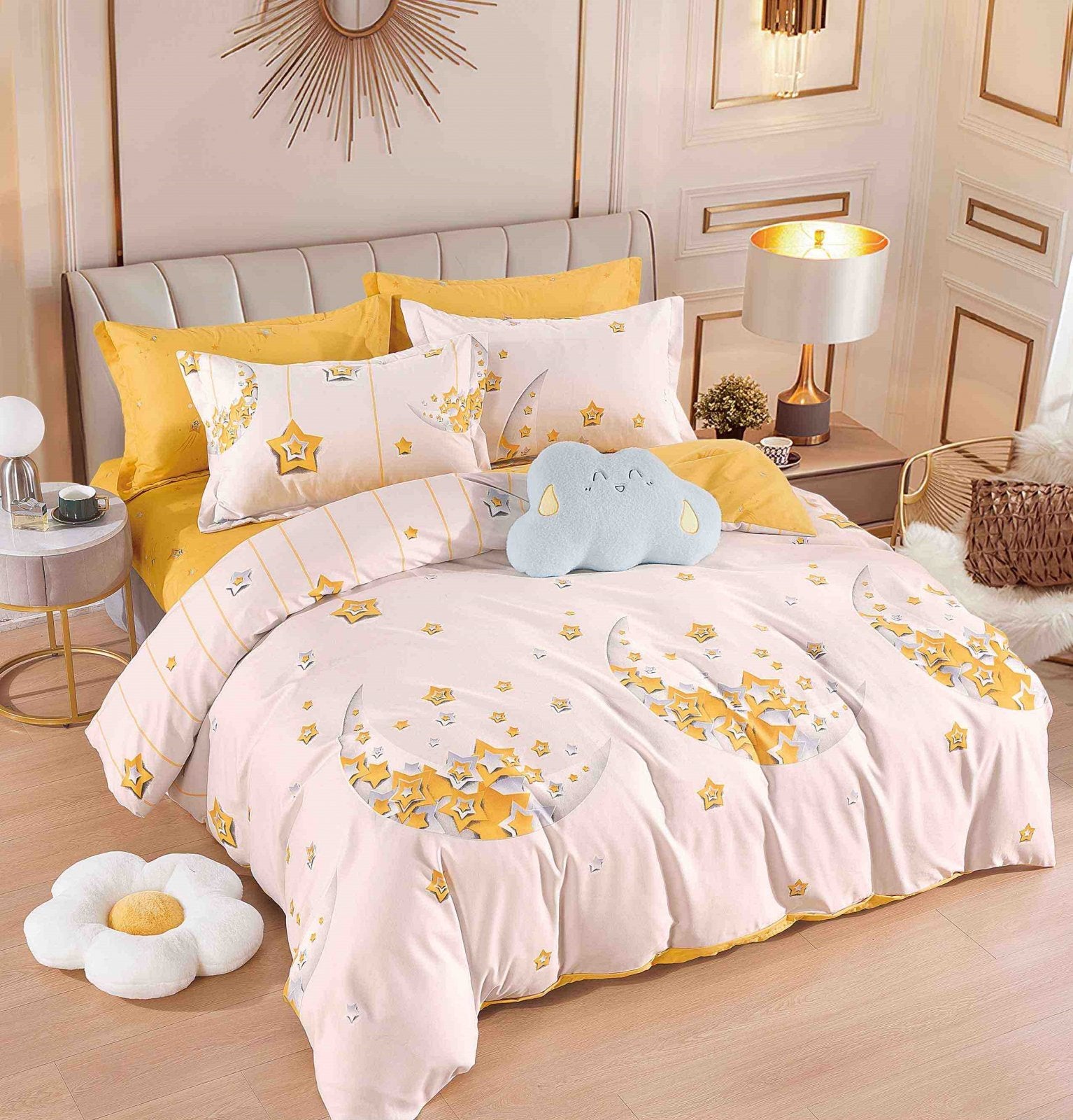 Lenjerie Pat Dublu din Finet, 6 Piese, Luna/Stele-C6529