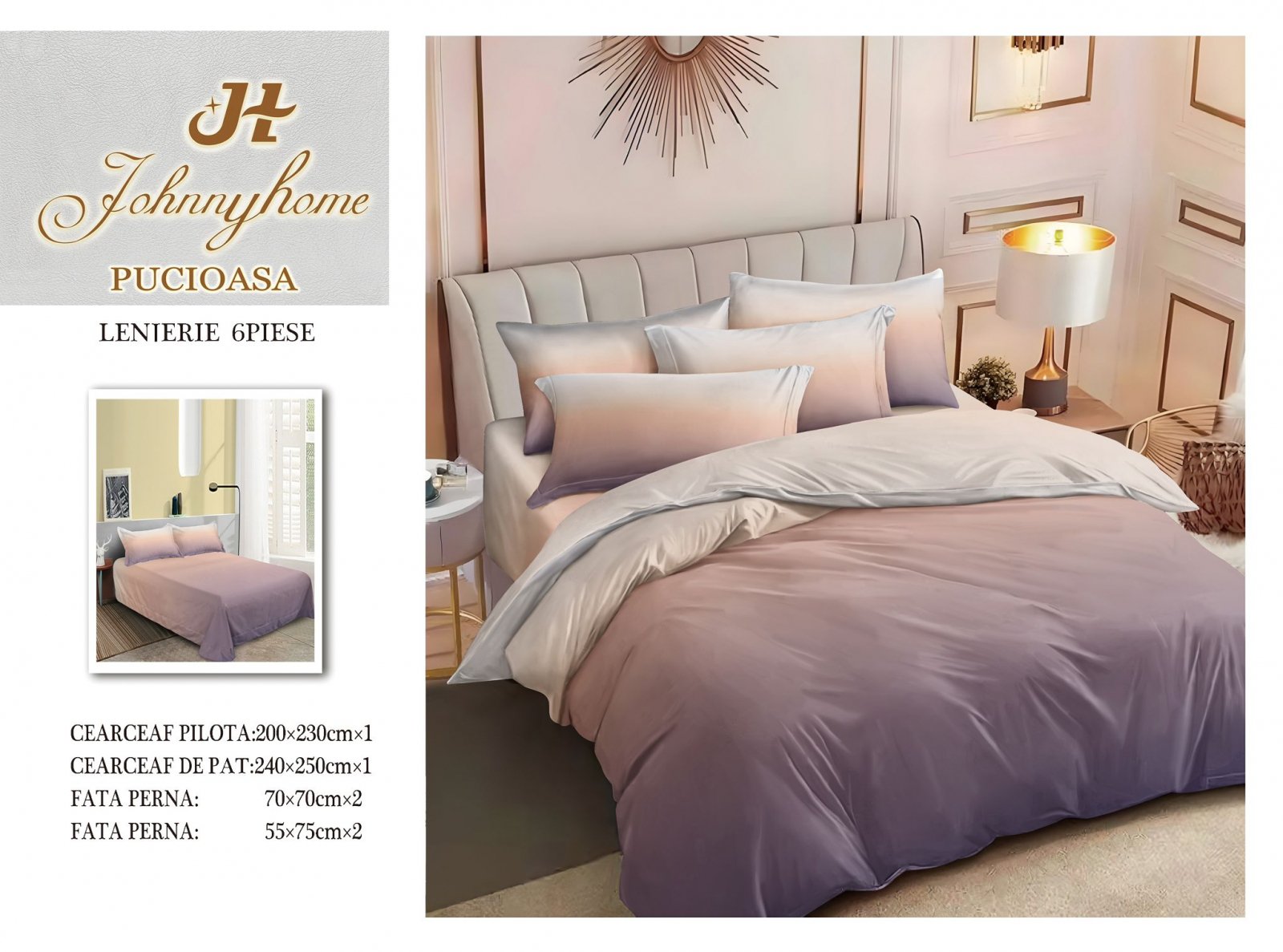 Lenjerie Pat Dublu din Finet, 6 Piese, Mov/Bej Degrade-H7559