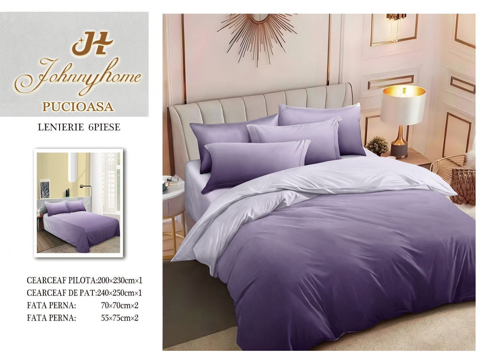 Lenjerie Pat Dublu din Finet, 6 Piese, Mov Degrade-H7553